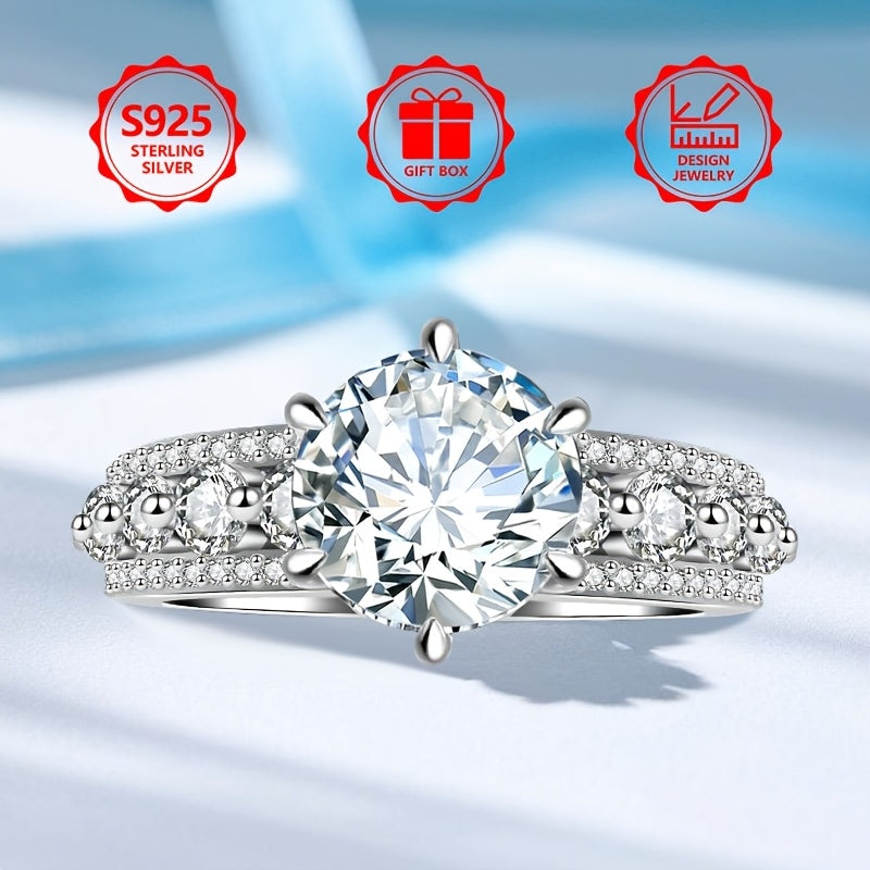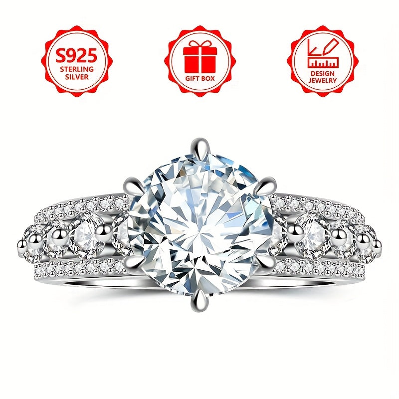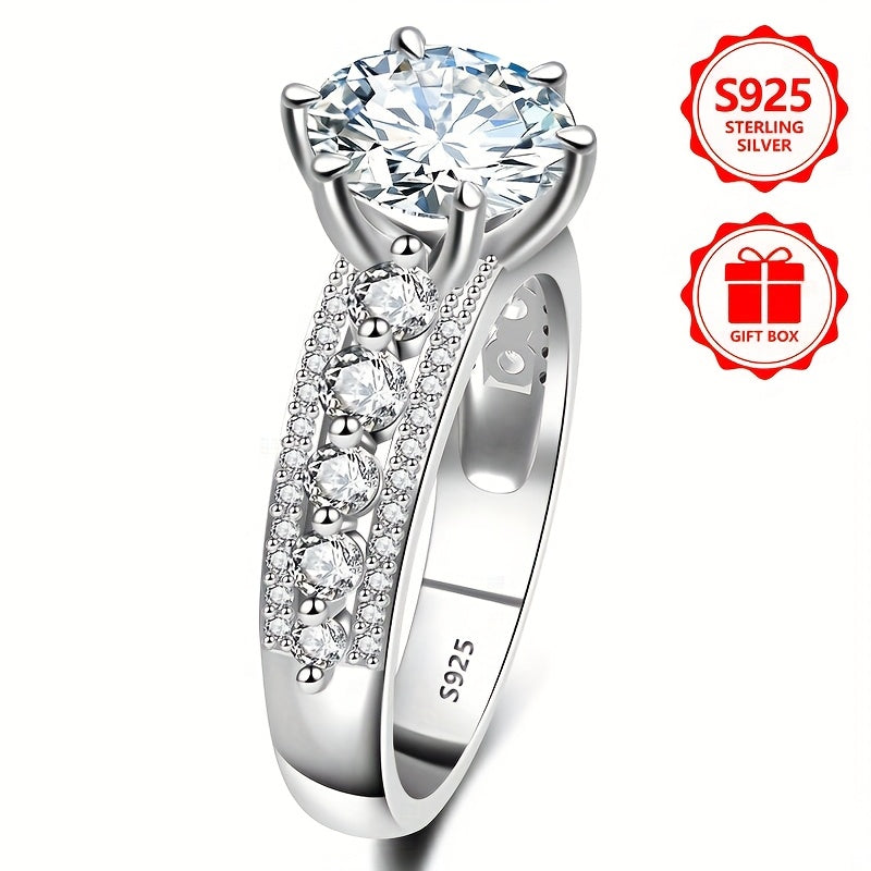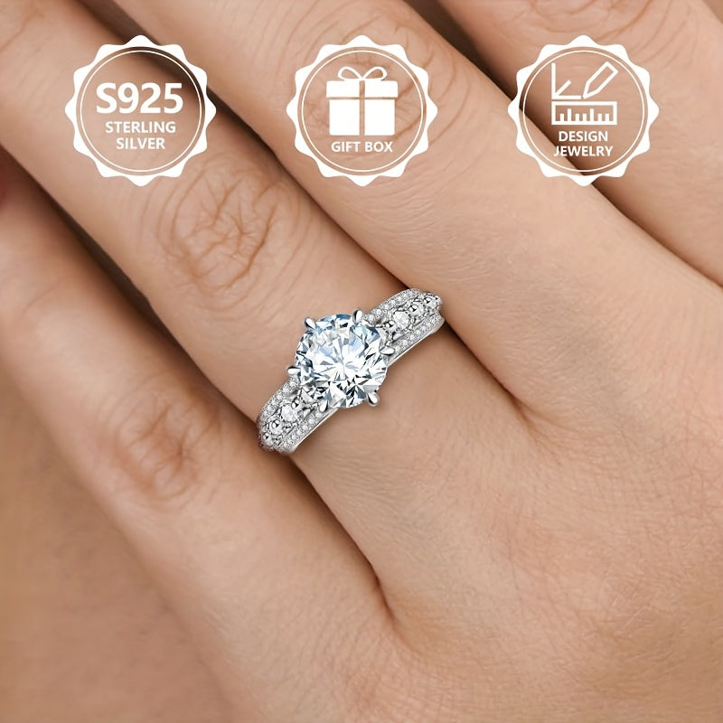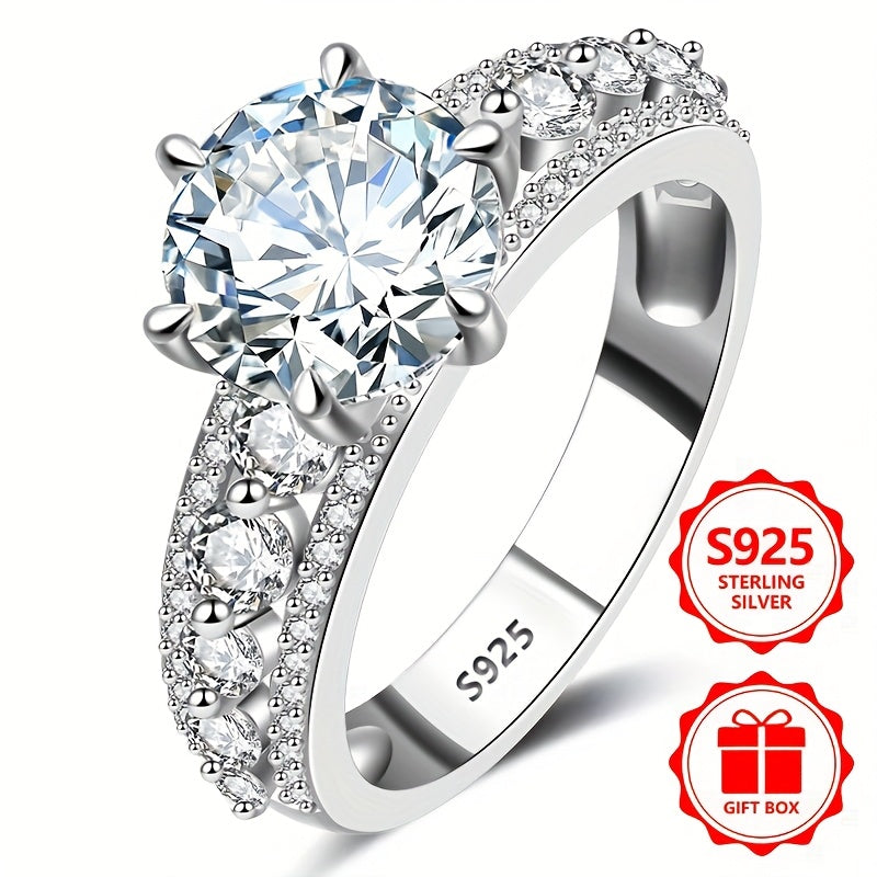 This stunning ring is crafted from 925 sterling silver and features a large solid cubic zirconia inlay. Perfect for proposals, weddings, or as a gift for a friend.