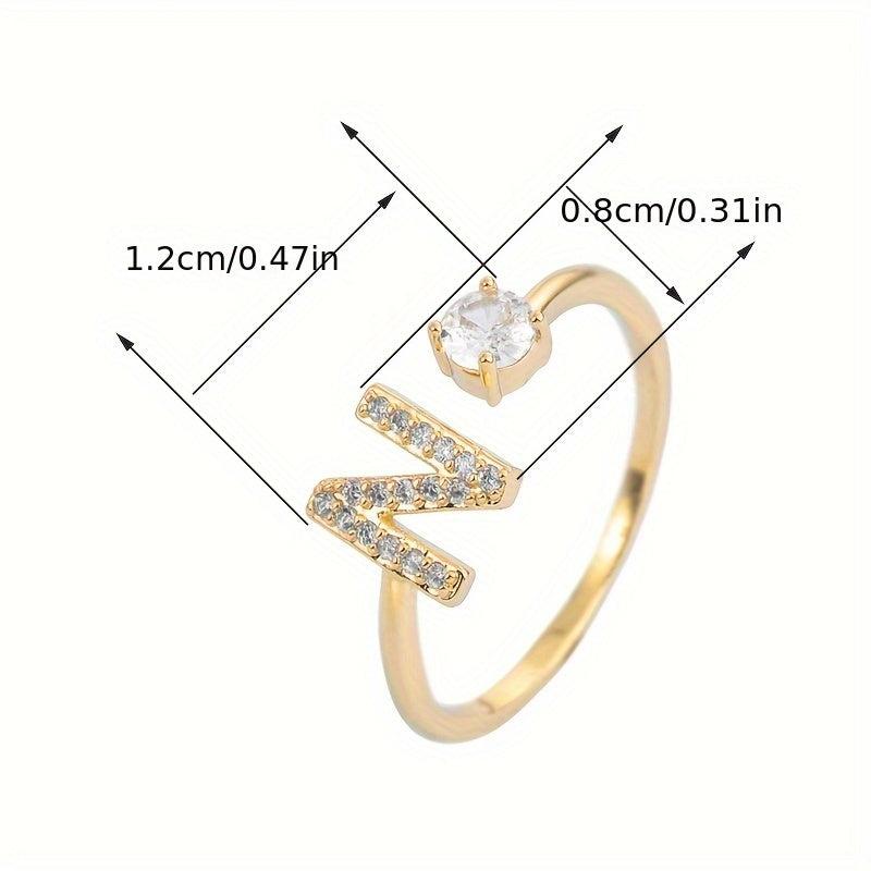 This adjustable ring features a stunning 'A' letter design with sparkling cubic zirconia stones on an open band. Perfect for daily wear or special occasions, this ring makes a thoughtful gift for any woman.