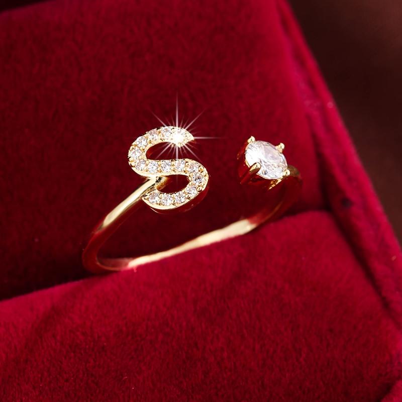 A Letter Adjustable Ring with CZ Open Band for Women Daily & Special Occasion