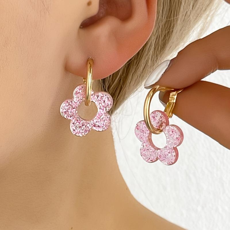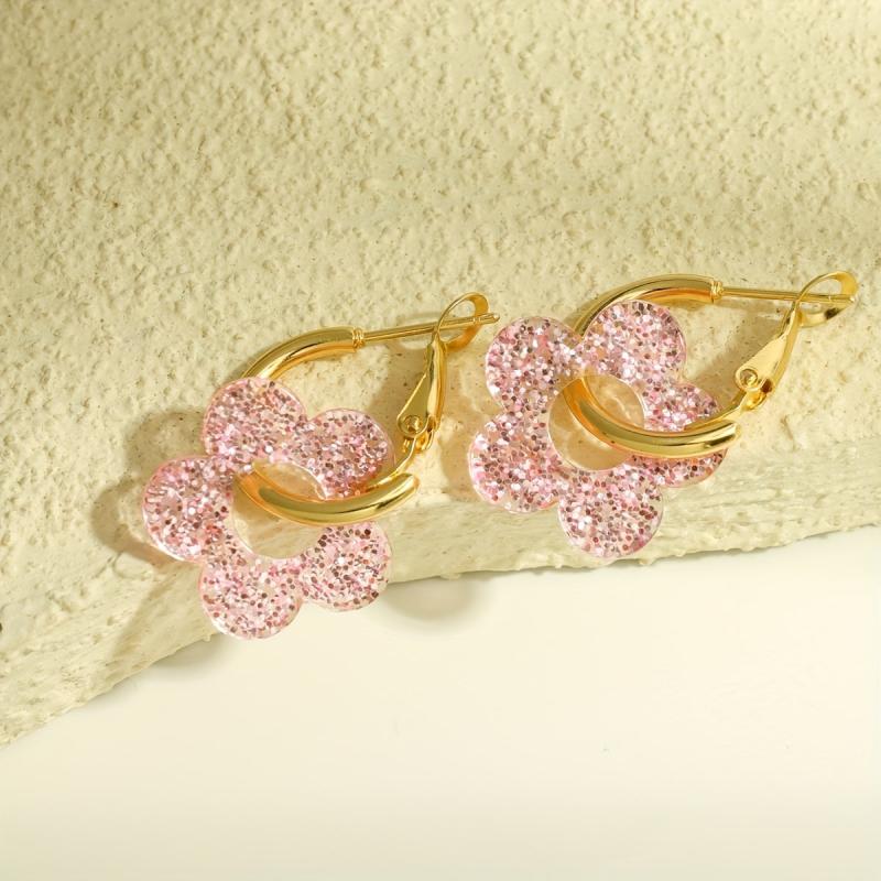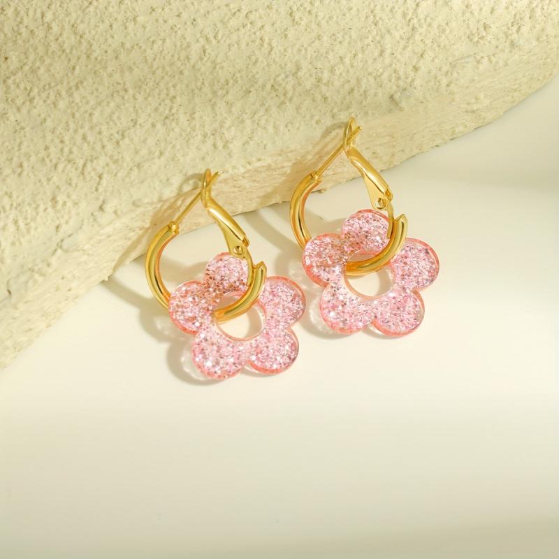 Elevate your style with these chic acrylic starlight pink flower dangle earrings that are perfect for everyday wear.