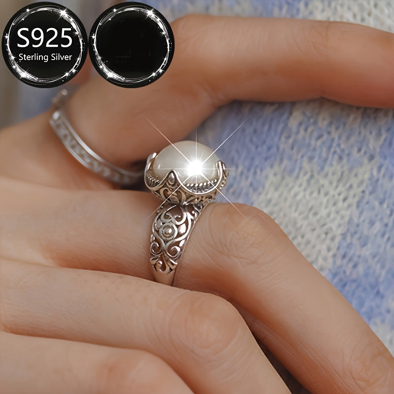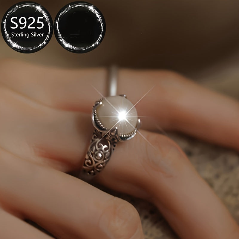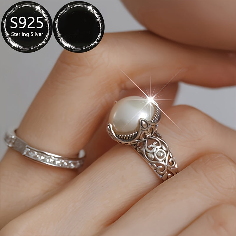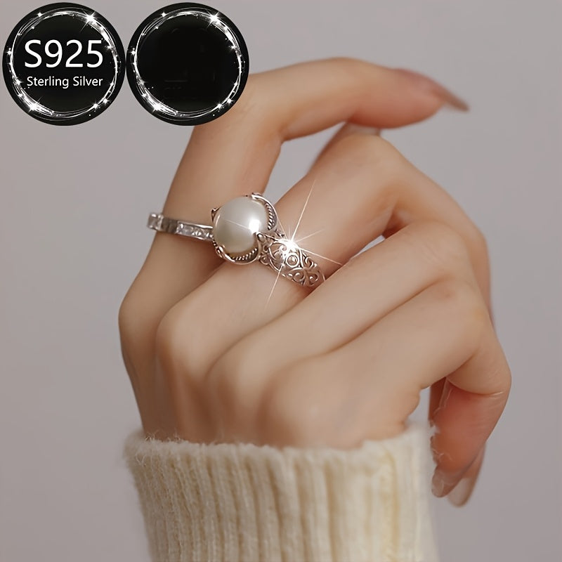 This retro-style ring features a classic hollow cloud design with a shell accent. It is made of 925 sterling silver and is suitable for both daily wear and special occasions.