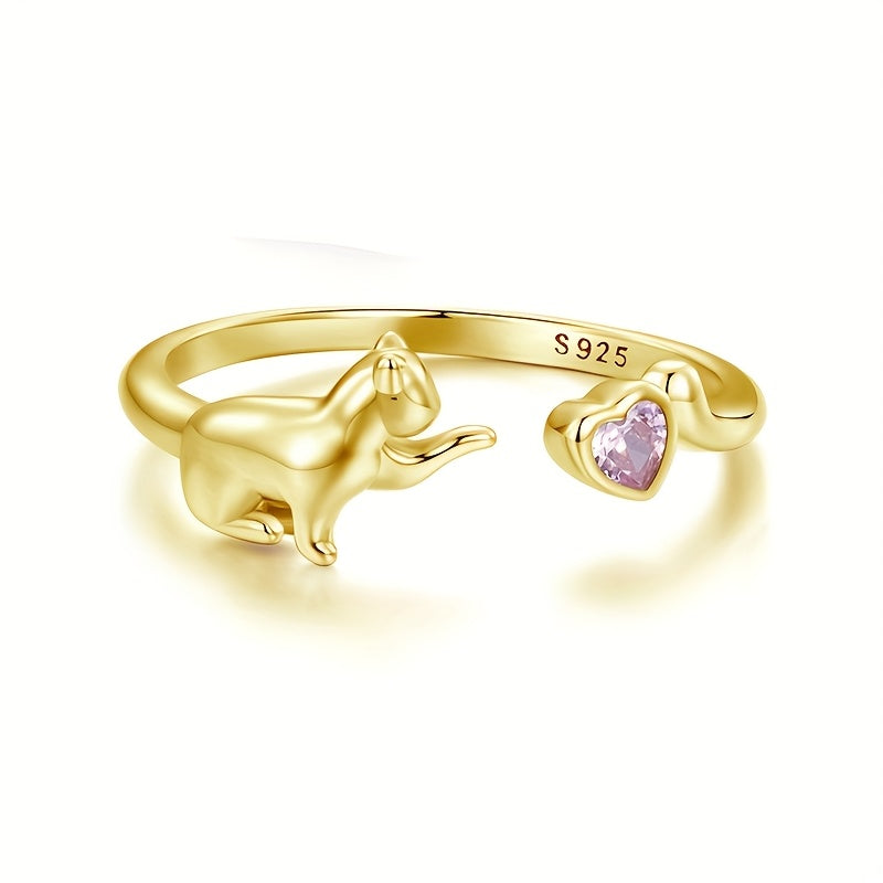 This stylish ring features a cat design in golden color, crafted with high-quality S925 sterling silver plating. It's perfect for casual wear or special events like Mother's Day parties.