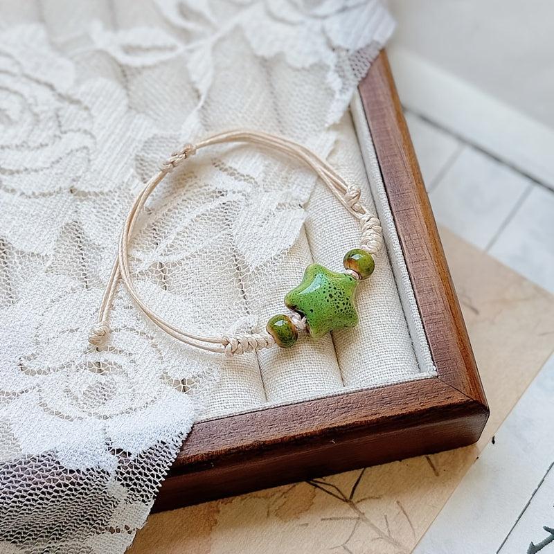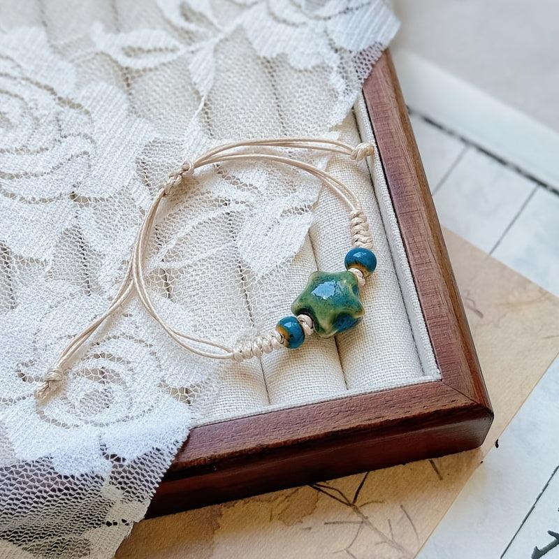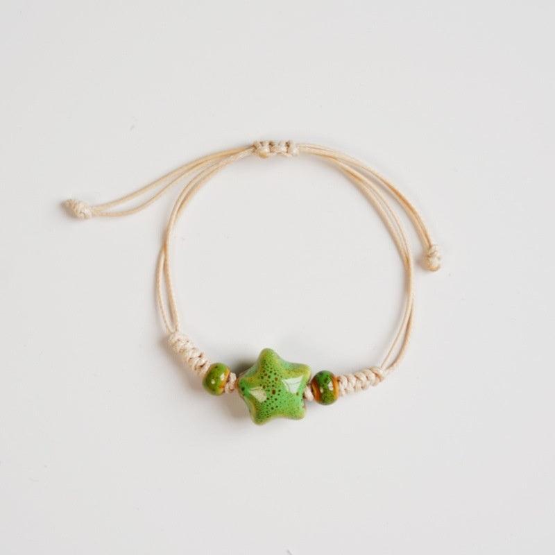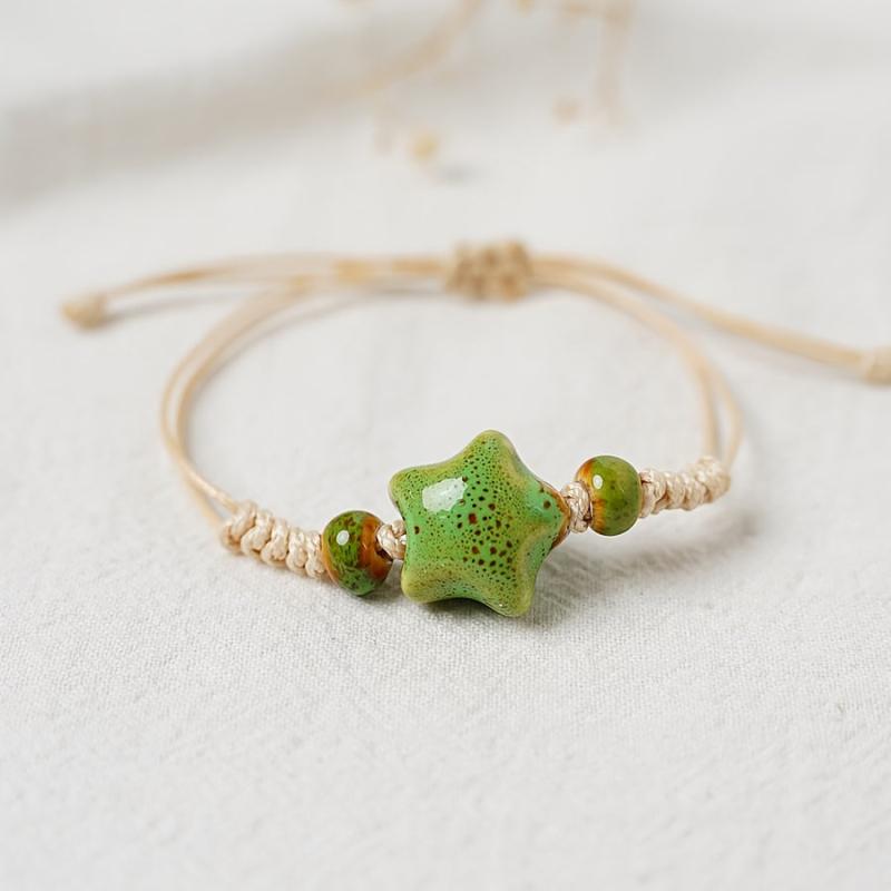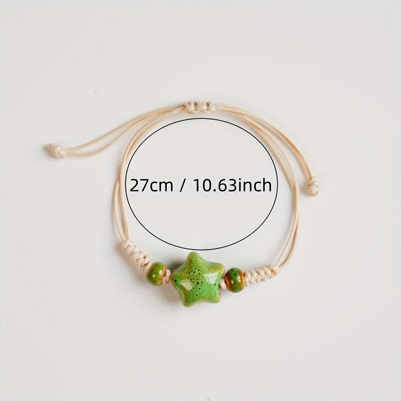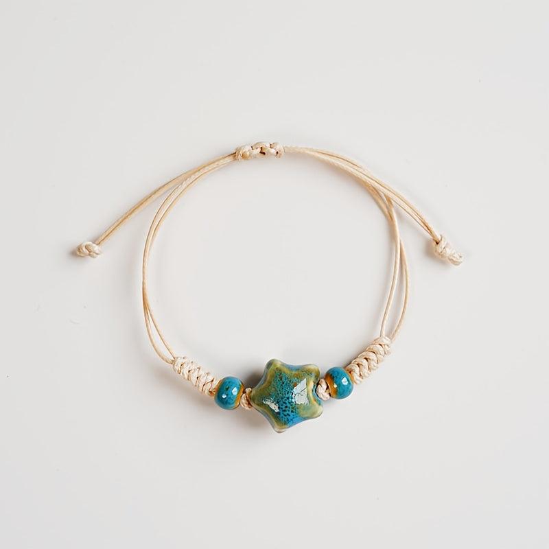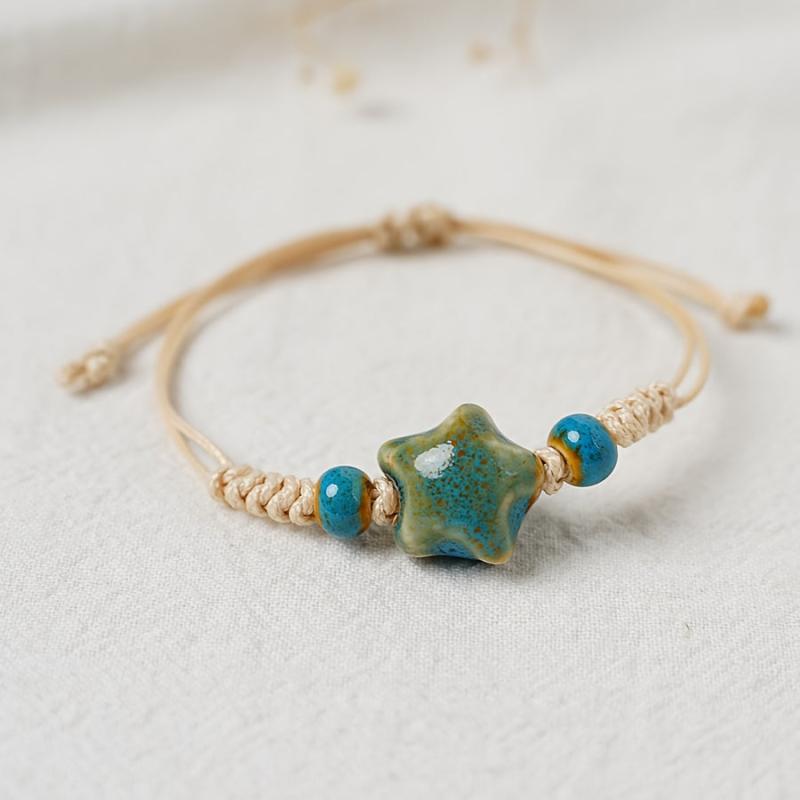 Add a touch of celestial charm to your outfits with this adjustable ceramic star charm bracelet. Handwoven rope design makes it perfect for daily wear or travel holidays.