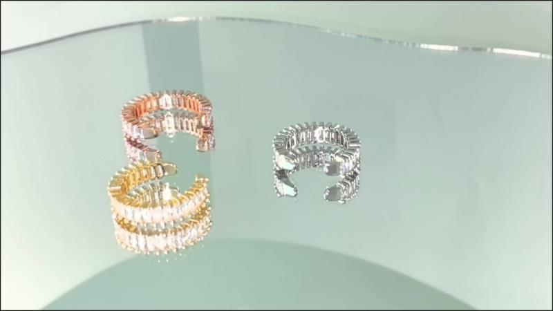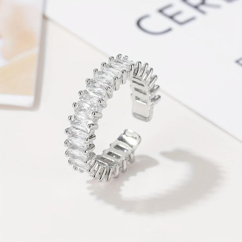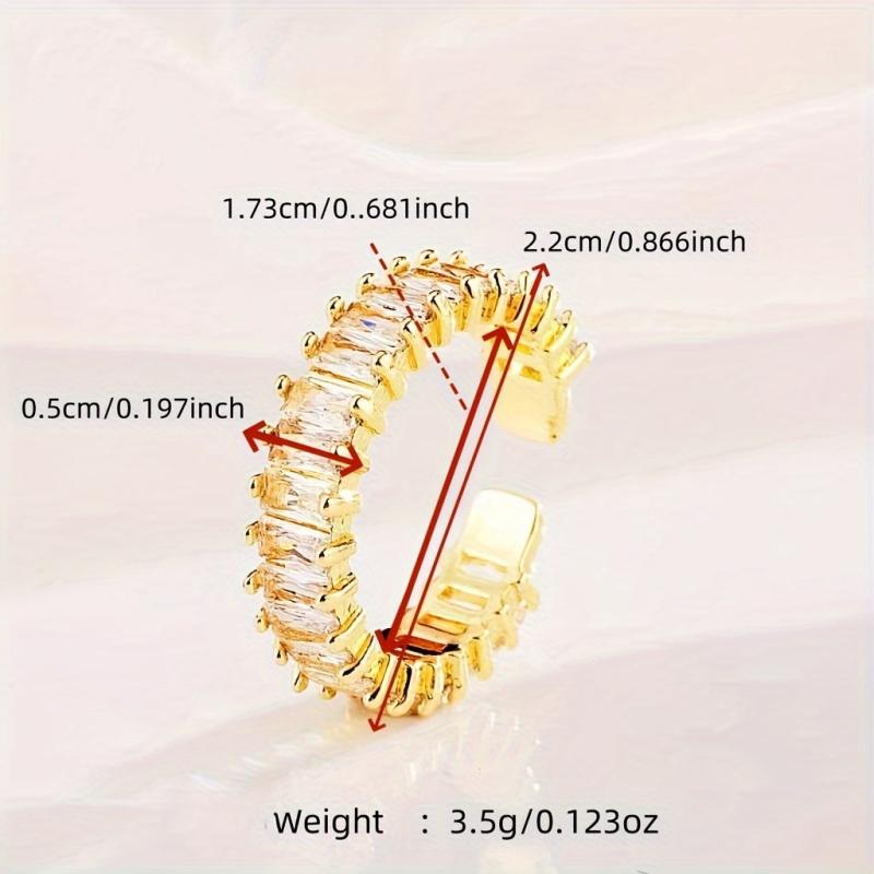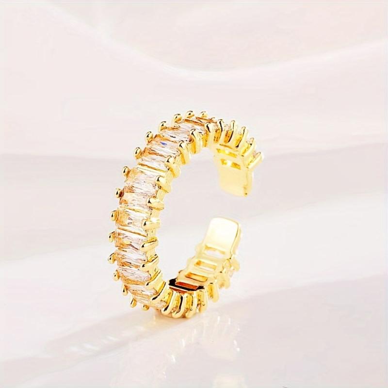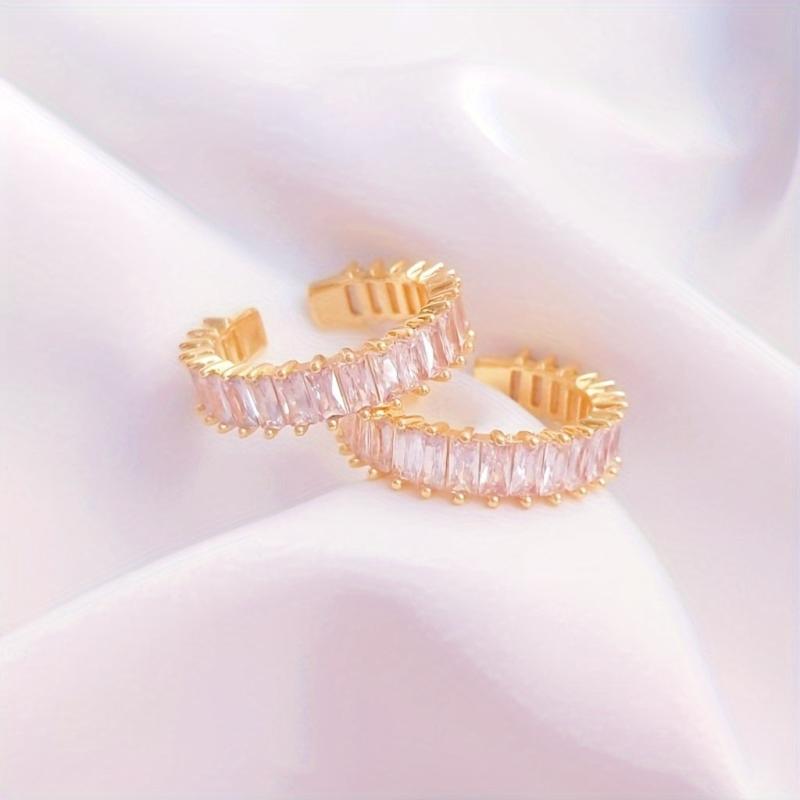 This adjustable open ring features sparkling pink cubic zirconia stones on a golden tone band. It's perfect for daily wear or parties, making it a fashionable women's wedding accessory.