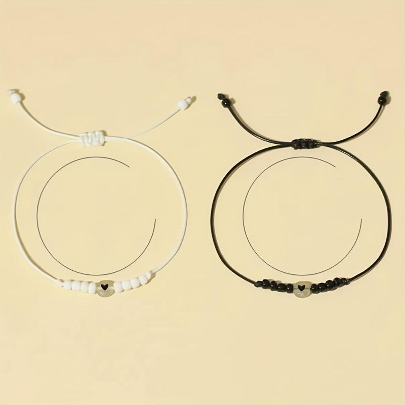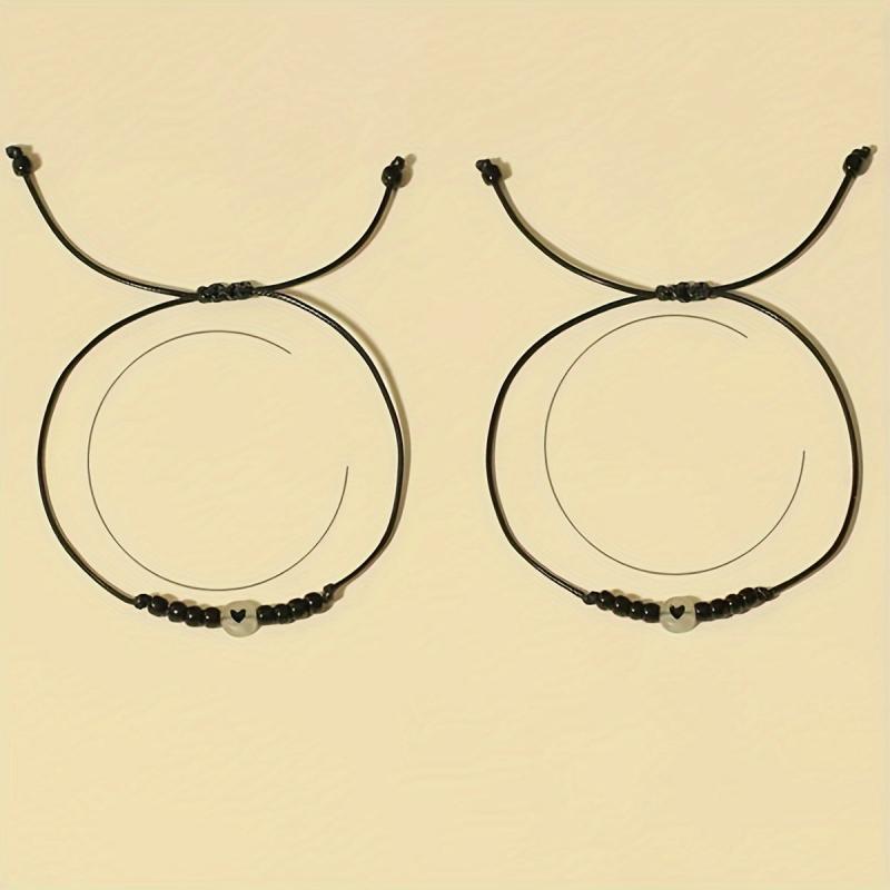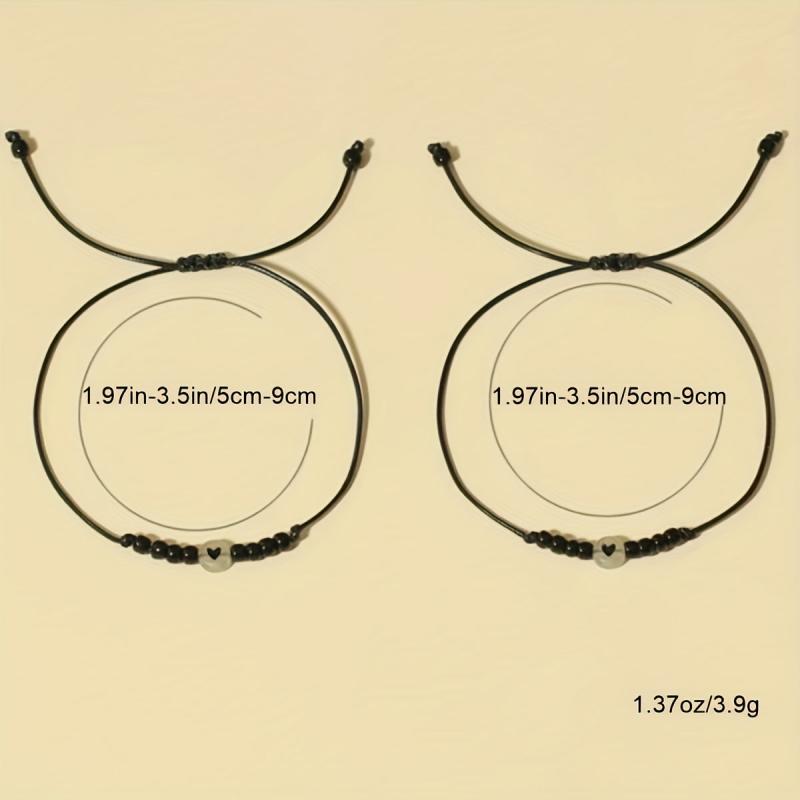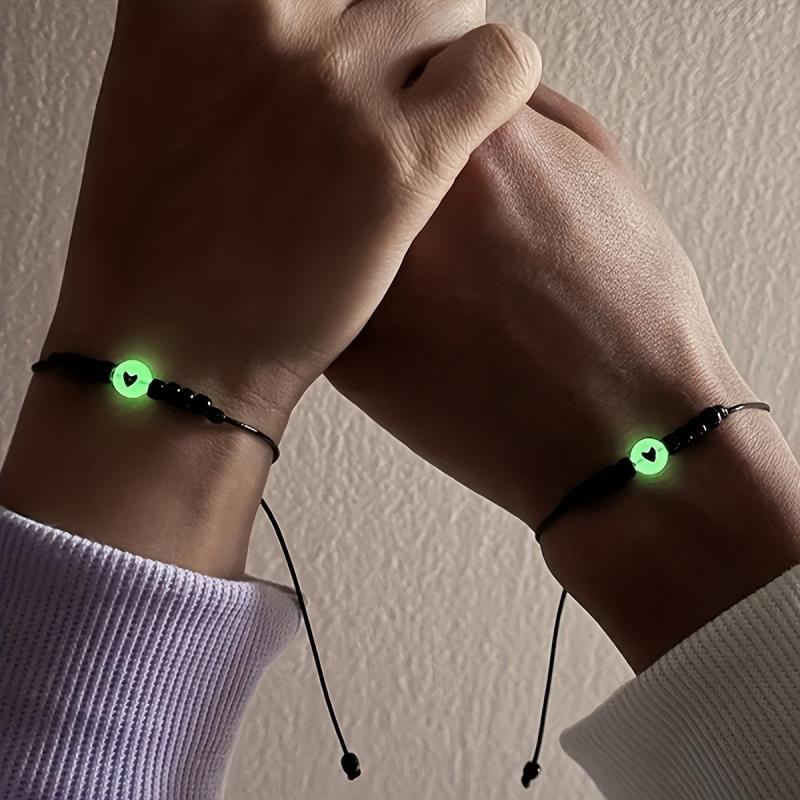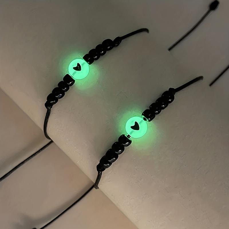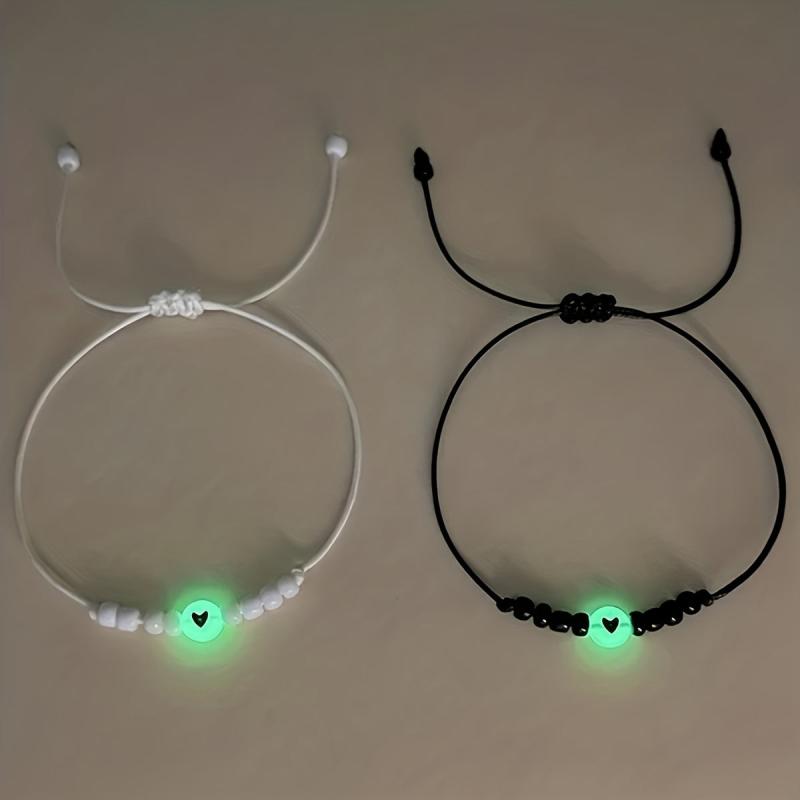 These 2pcs bracelets feature adjustable luminous heart beads, perfect for couples and friends. Ideal for casual attire or gifting to loved ones.