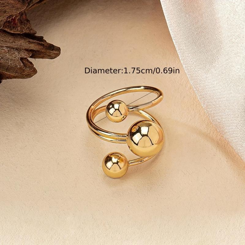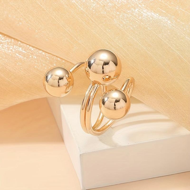 Add a touch of glamour with this adjustable open ring featuring multiple round golden balls. Perfect for everyday wear or special occasions.