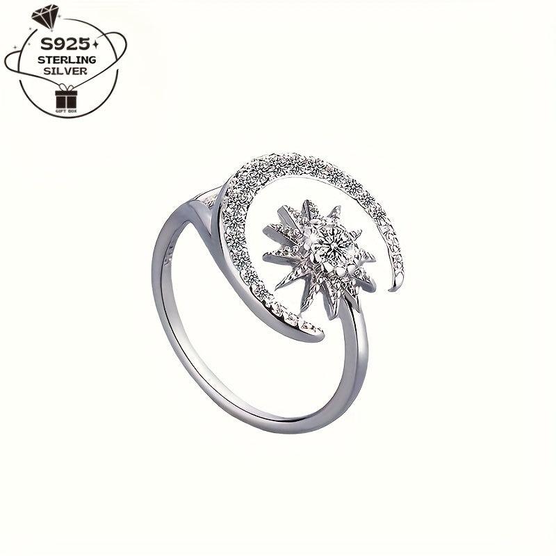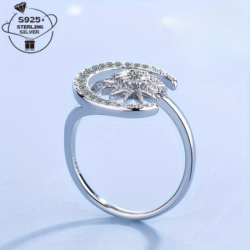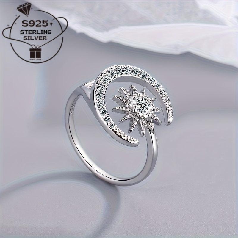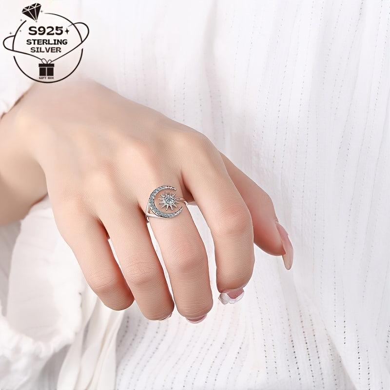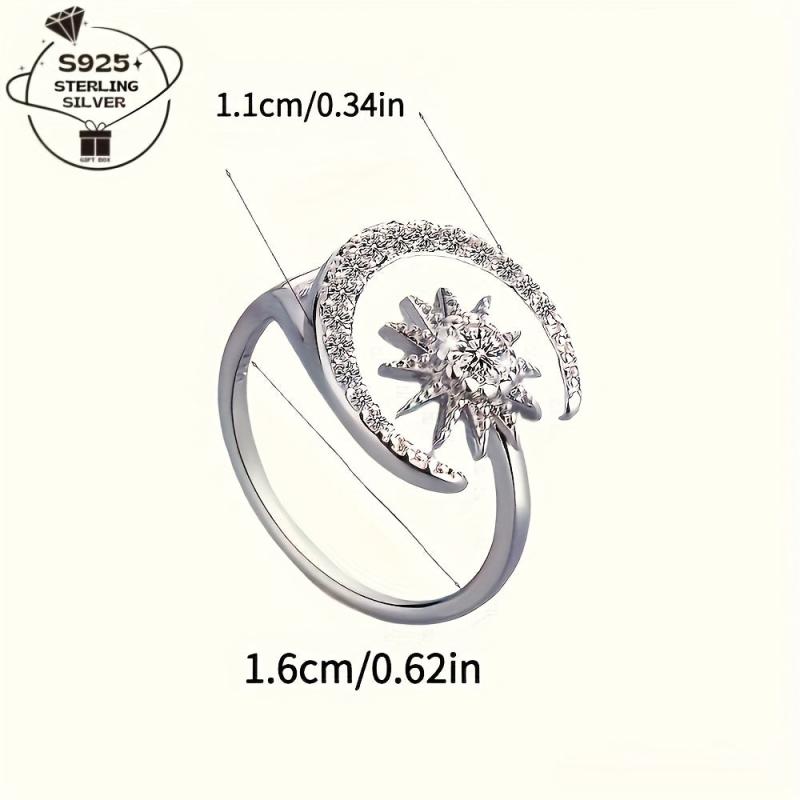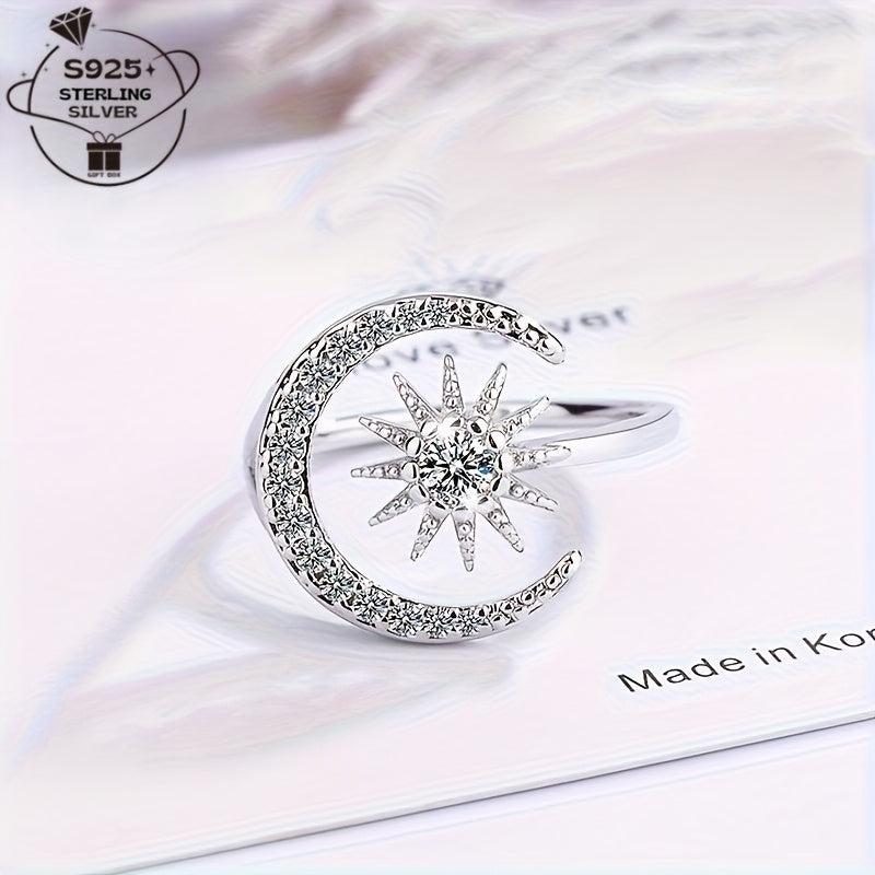 This adjustable ring features a sun and moon design with sparkling cubic zirconia accents. Made of high-quality 925 sterling silver, it is perfect for casual attire and adds a touch of celestial charm to your look.