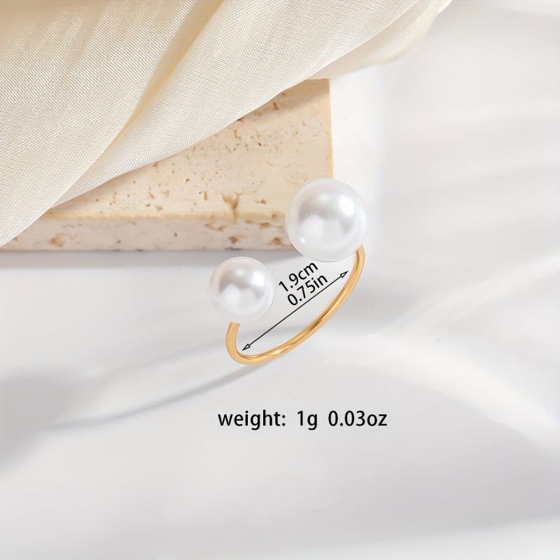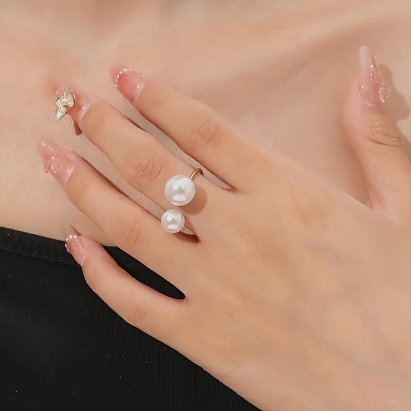 Elegantly designed ladies' hand accessories featuring a double pearl ring style with an adjustable U-shaped design.