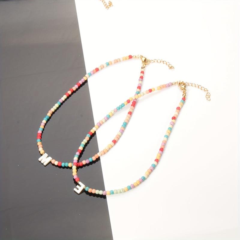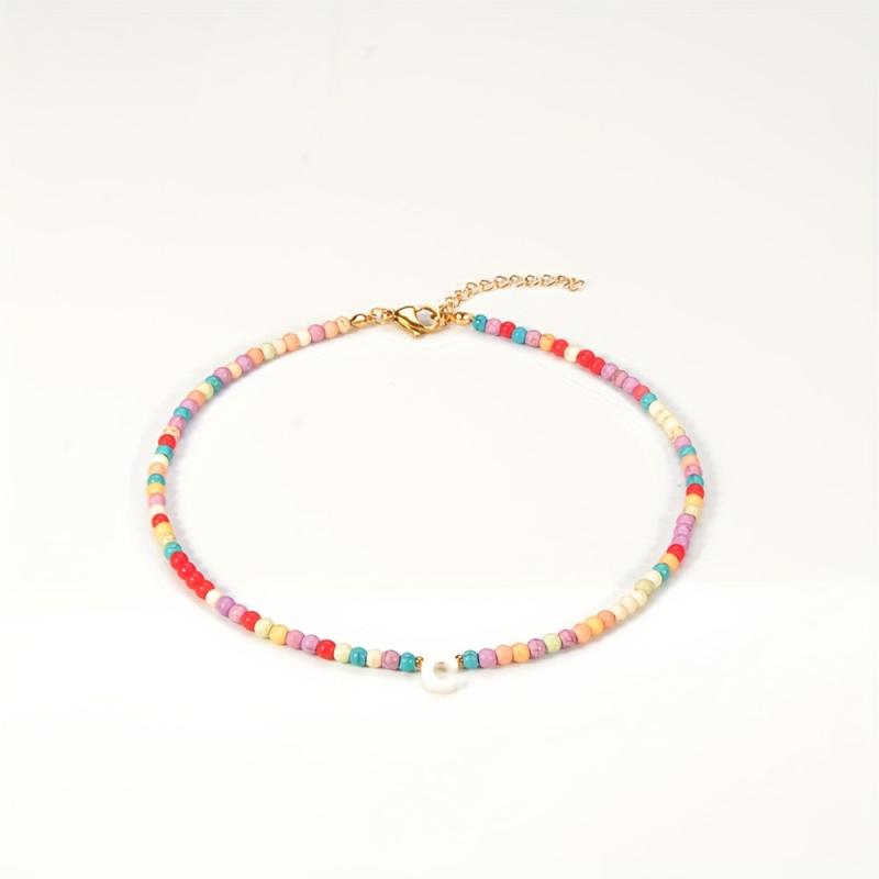 Add a pop of color with this vibrant 26 English initial pendant necklace featuring 4mm synthetic turquoise beads. Perfect for adding charm to your outfit.