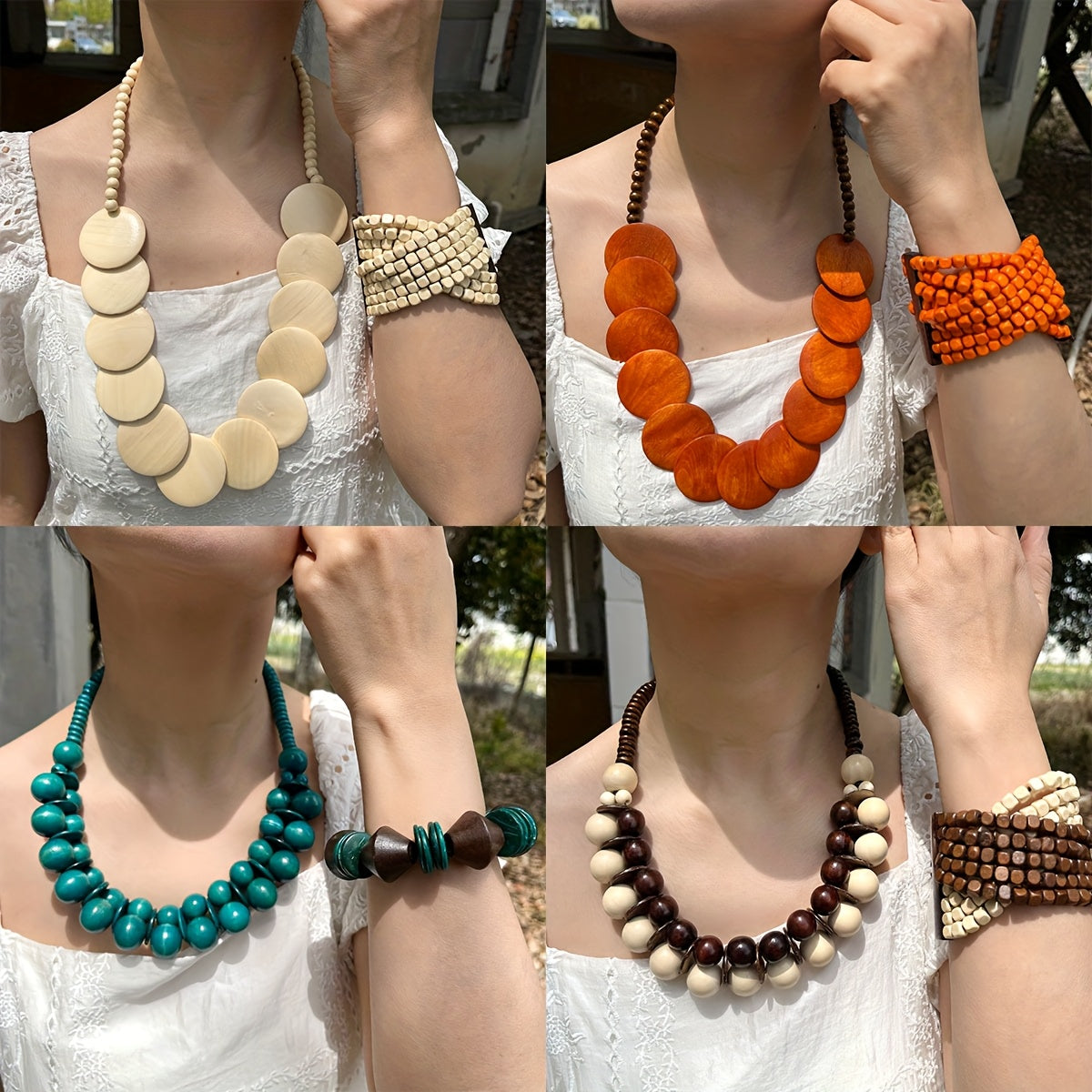 Add a touch of vintage charm with this bohemian European ethnic retro style necklace and bracelet set.