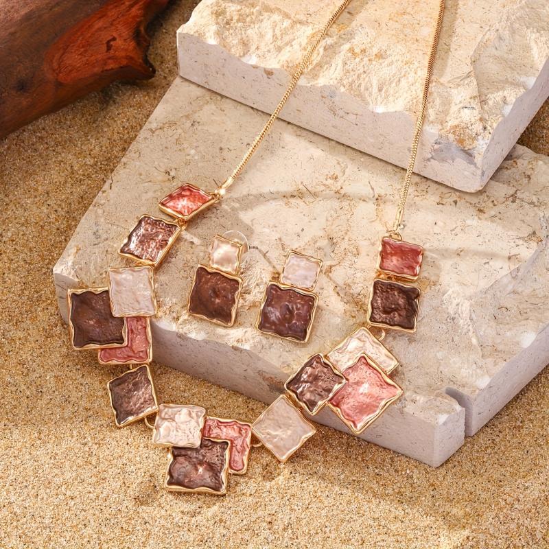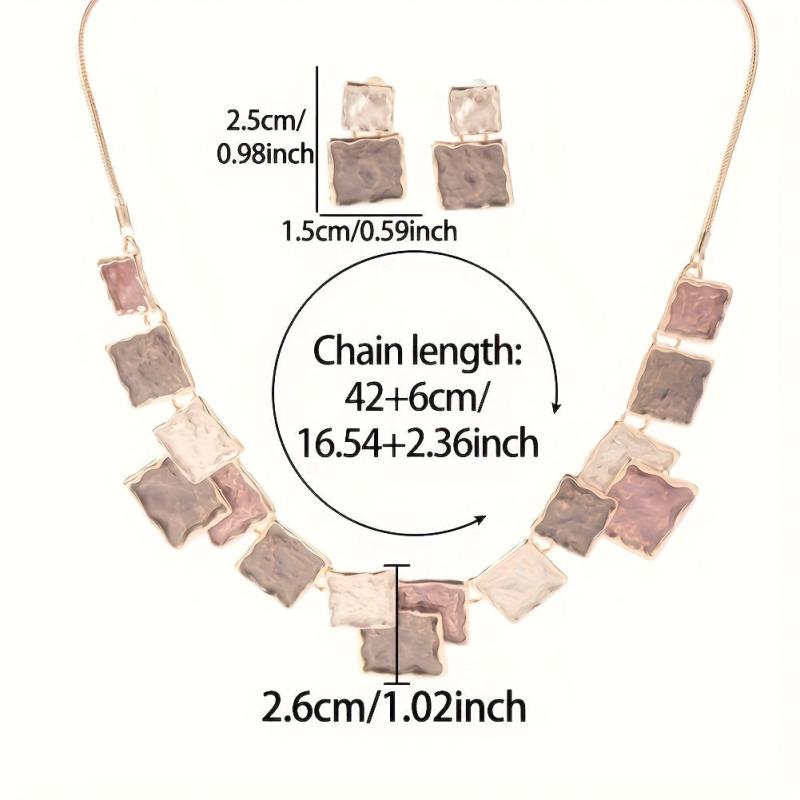 This set includes 2pcs earrings and 1pc necklace, perfect for spring and summer. Made of zinc alloy with a thin coating process, suitable for daily wear.