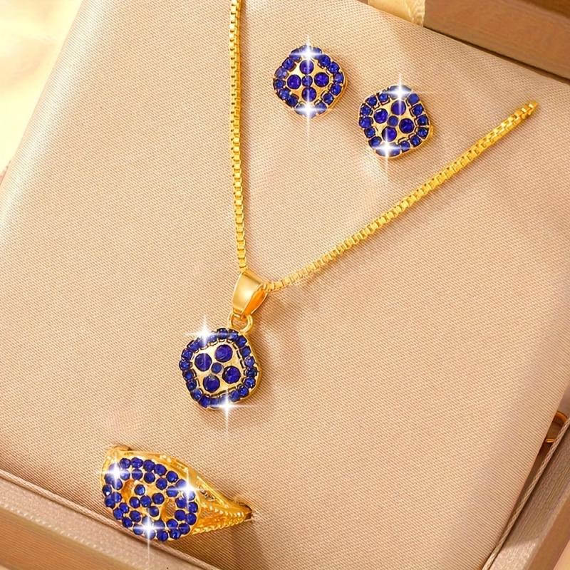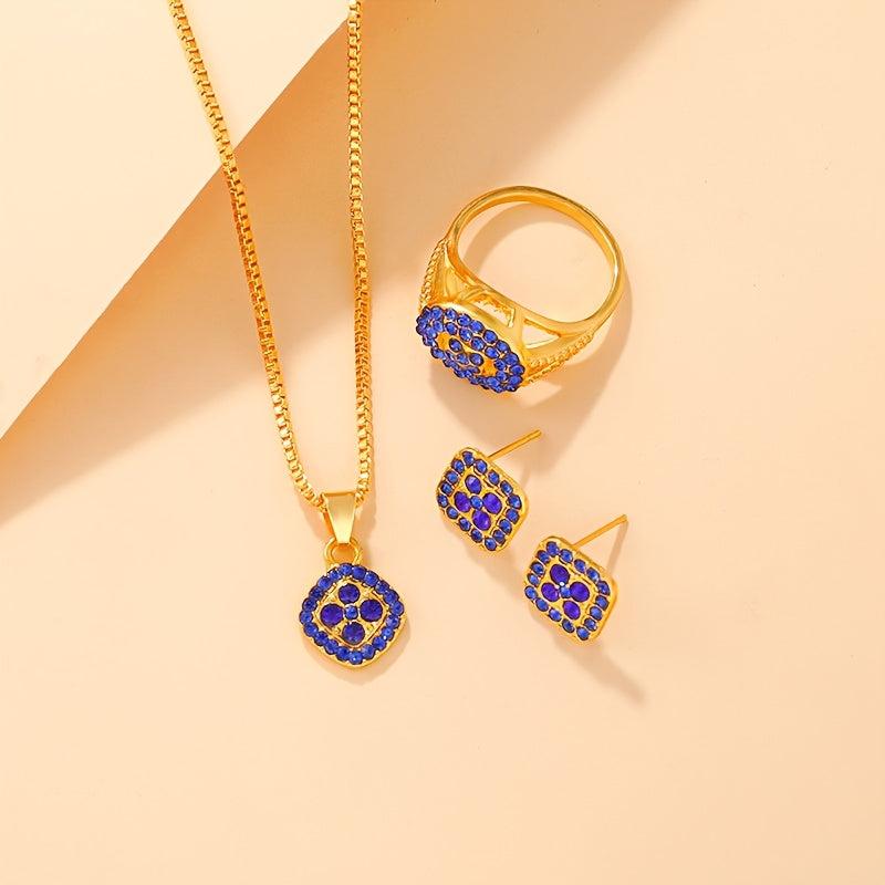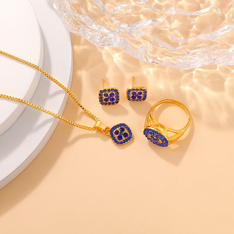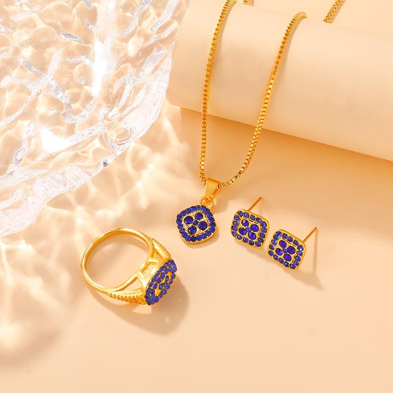 Elevate your style with this exquisite Bohemian glass mosaic jewelry set. Crafted with golden alloy construction, this set is perfect for all seasons and occasions.