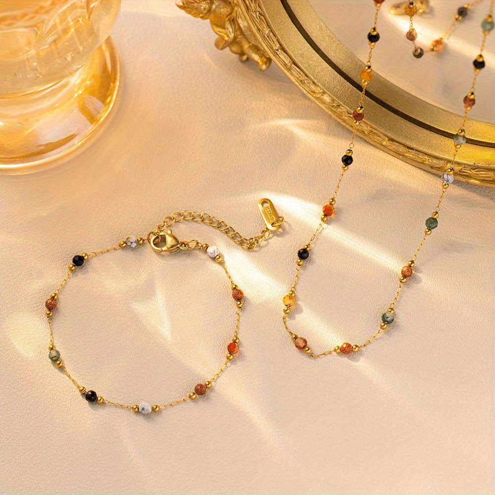 Bohemian Style Dopamine Stone Necklace and Bracelet Set