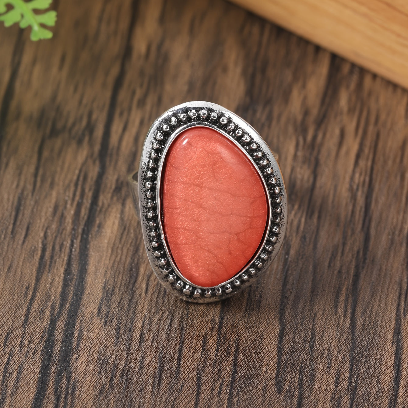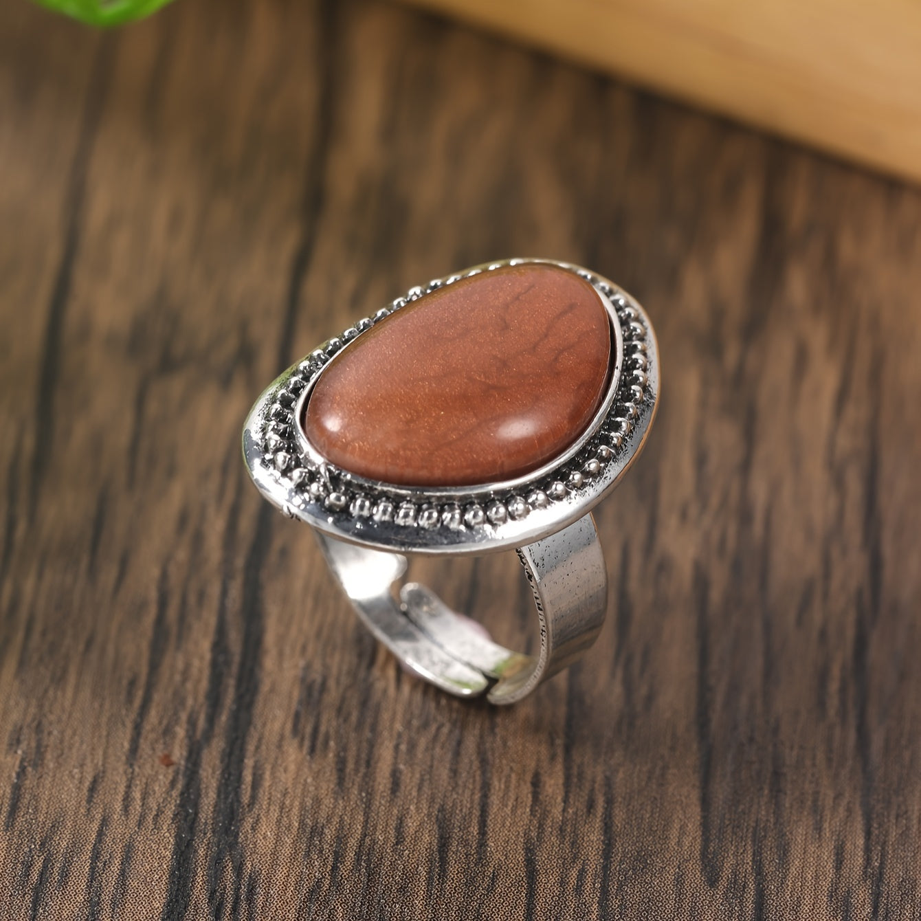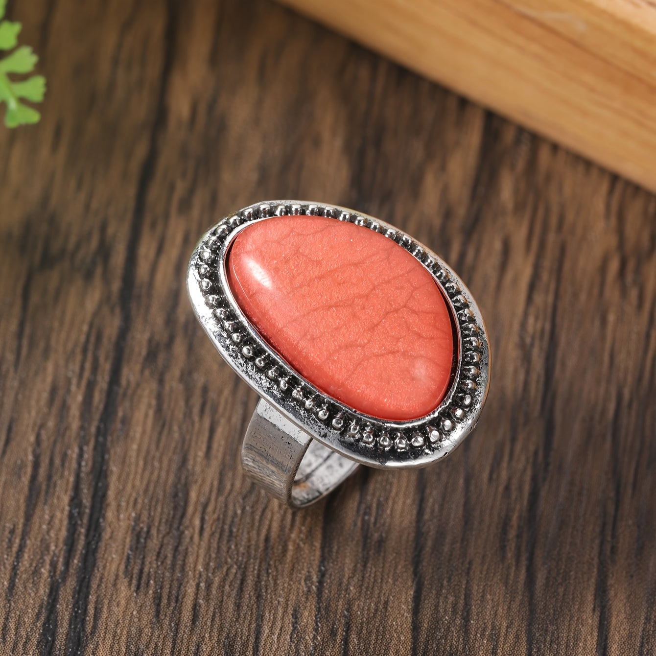 Elevate your style with this vintage bohemian-inspired stainless steel ring featuring a resin gemstone in a classic oval shape. Perfect for parties or as a thoughtful gift for women.