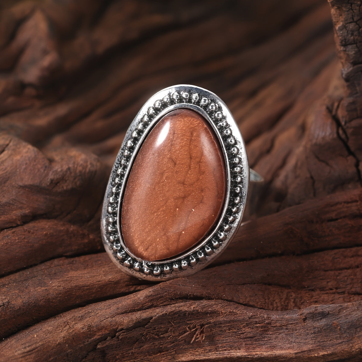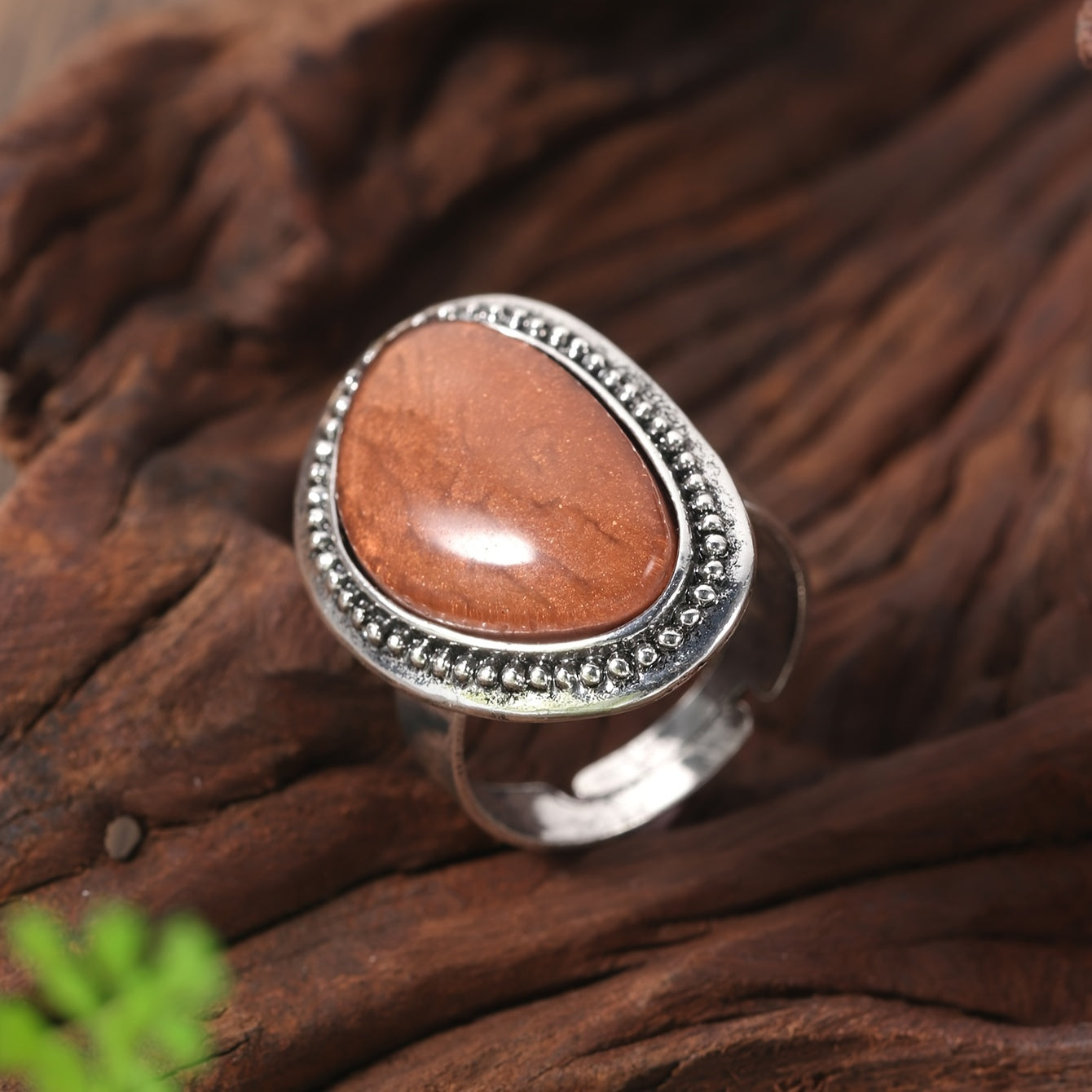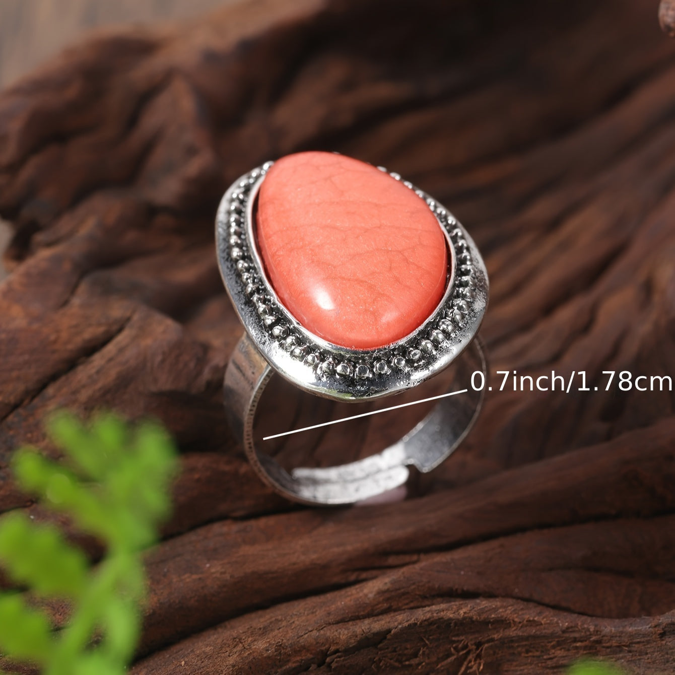 Elevate your style with this vintage bohemian-inspired stainless steel ring featuring a resin gemstone in a classic oval shape. Perfect for parties or as a thoughtful gift for women.
