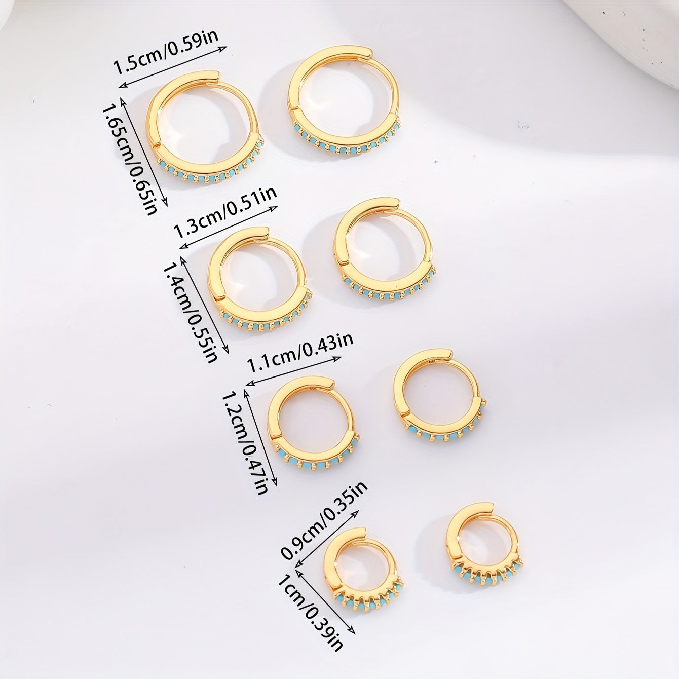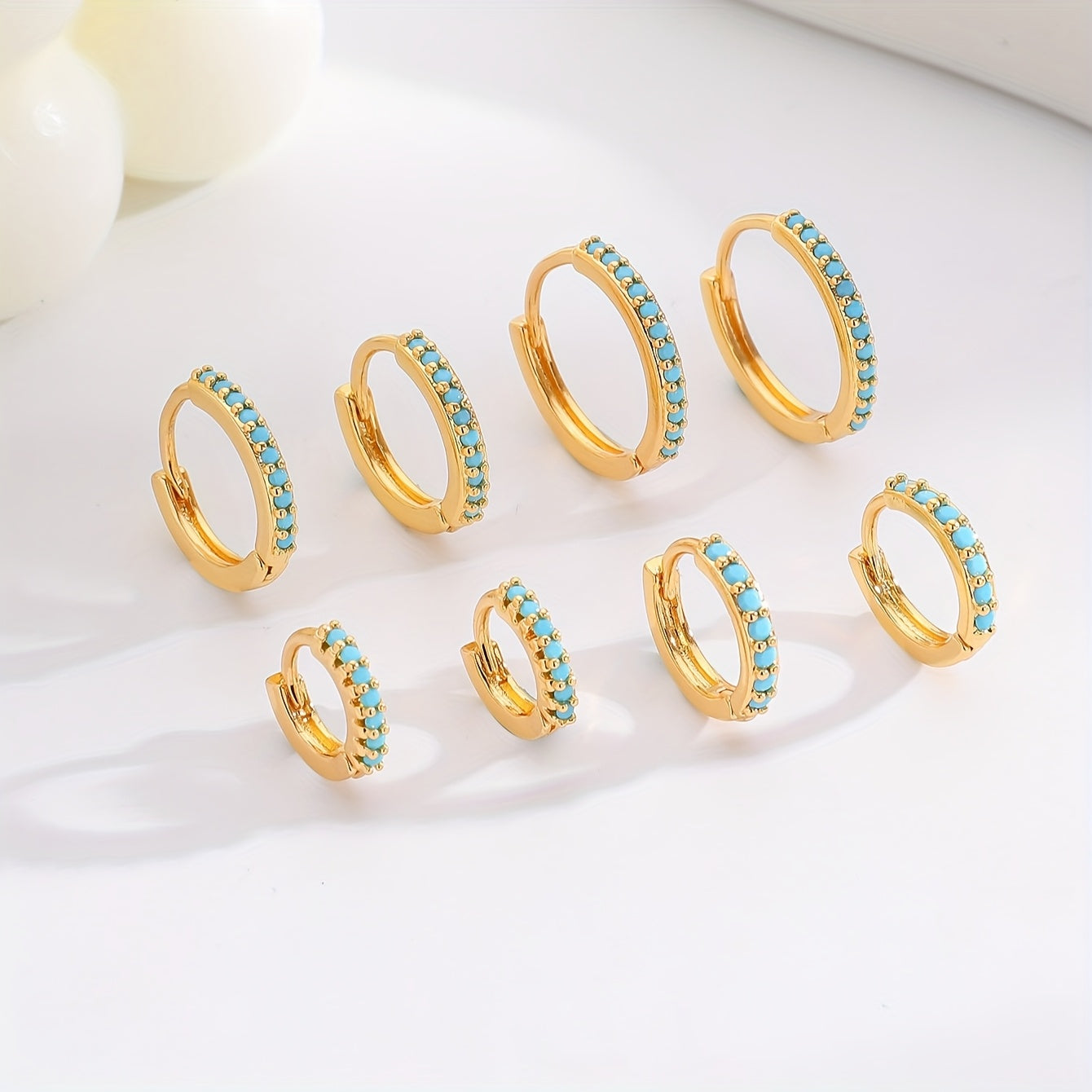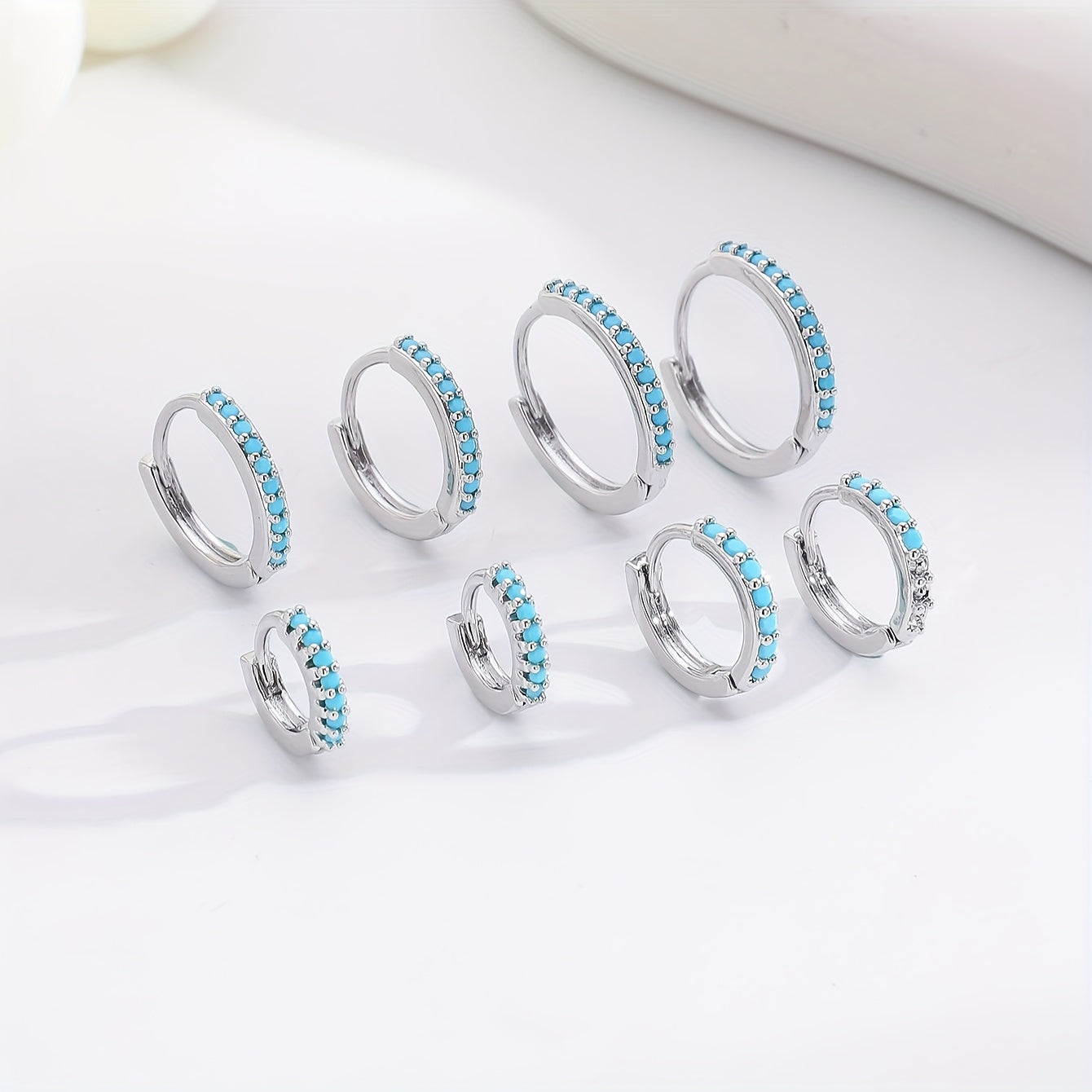 Elevate your look with this 8-piece set of bohemian style earrings featuring turquoise and copper details. Perfect for casual outfits or special occasions.