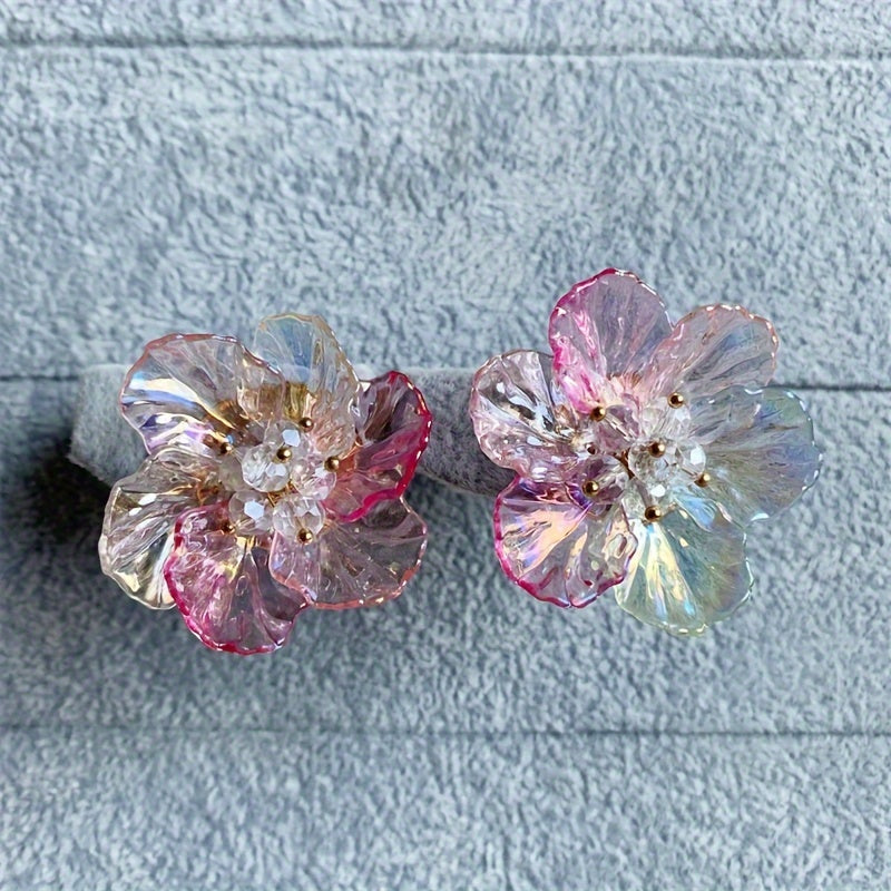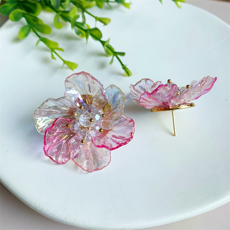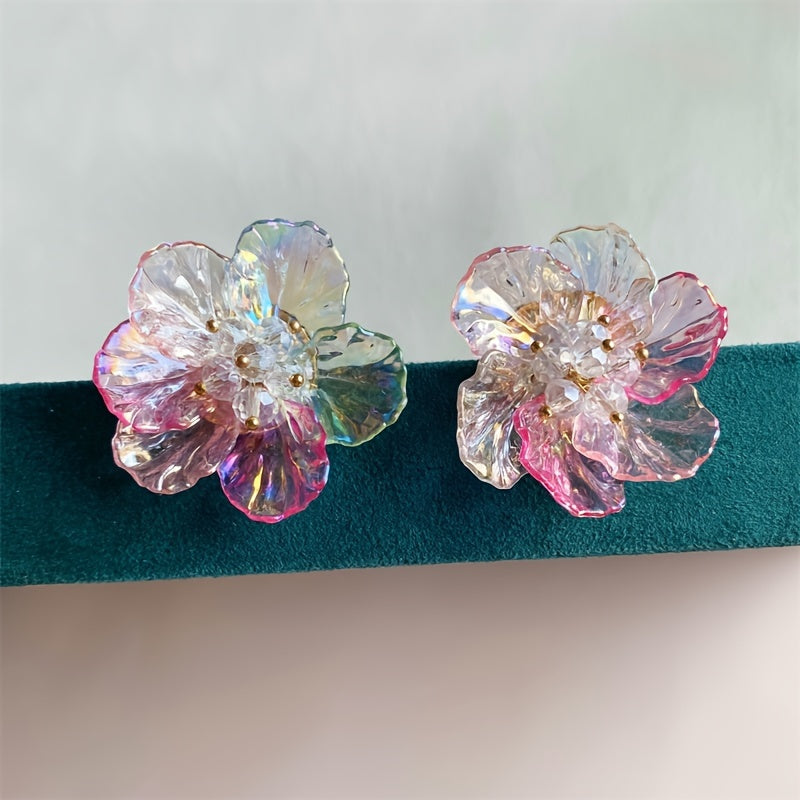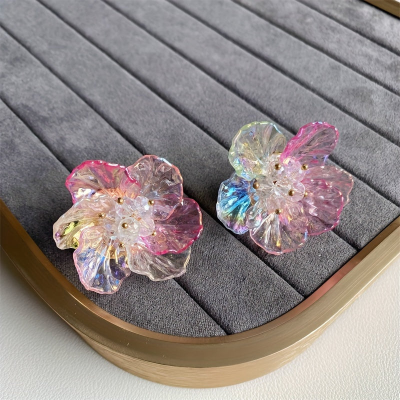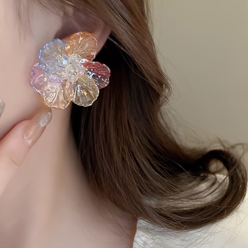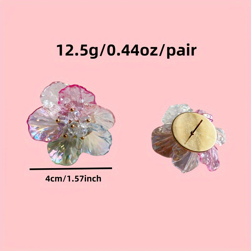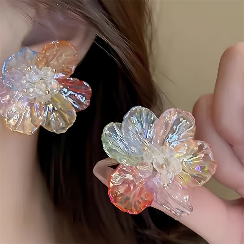 These boho acrylic flower earrings feature vibrant resin petals in orange, yellow, and pink colors. Perfect for weddings and daily wear, these earrings are a stylish addition to any outfit.