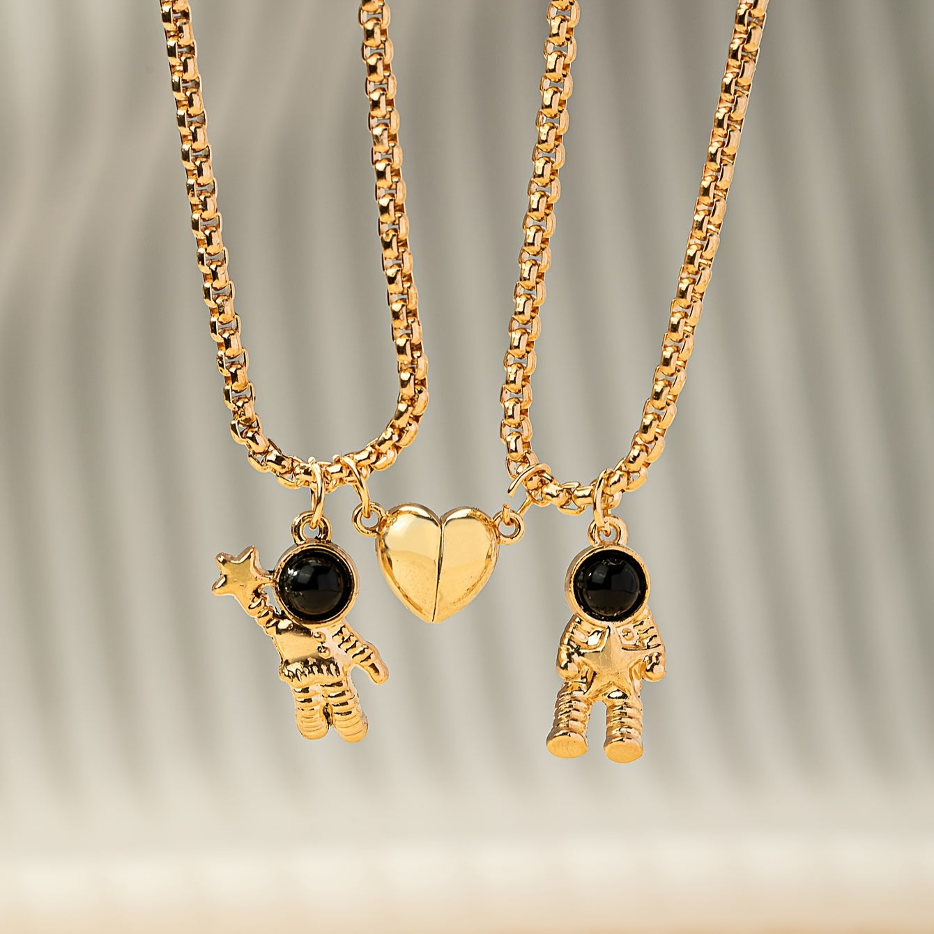 Unique Zinc Alloy necklace set with an Astronaut pendant designed for couples. Perfect for daily wear and gifting all seasons.