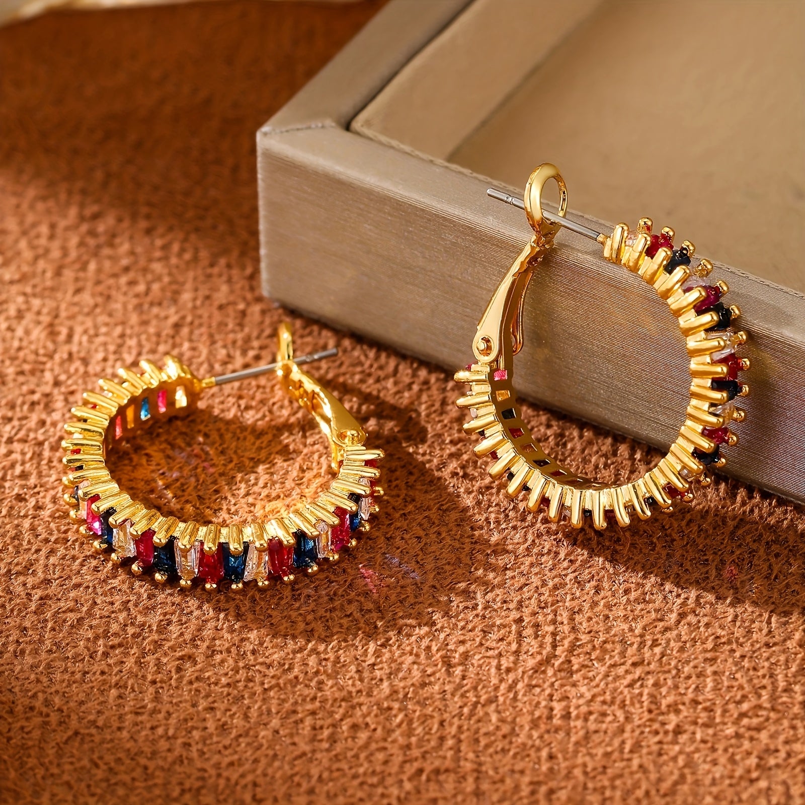 Add a pop of color to your look with these boho-inspired O-shaped hoop earrings featuring vibrant zirconia stones. Perfect for adding a touch of whimsy to any outfit.