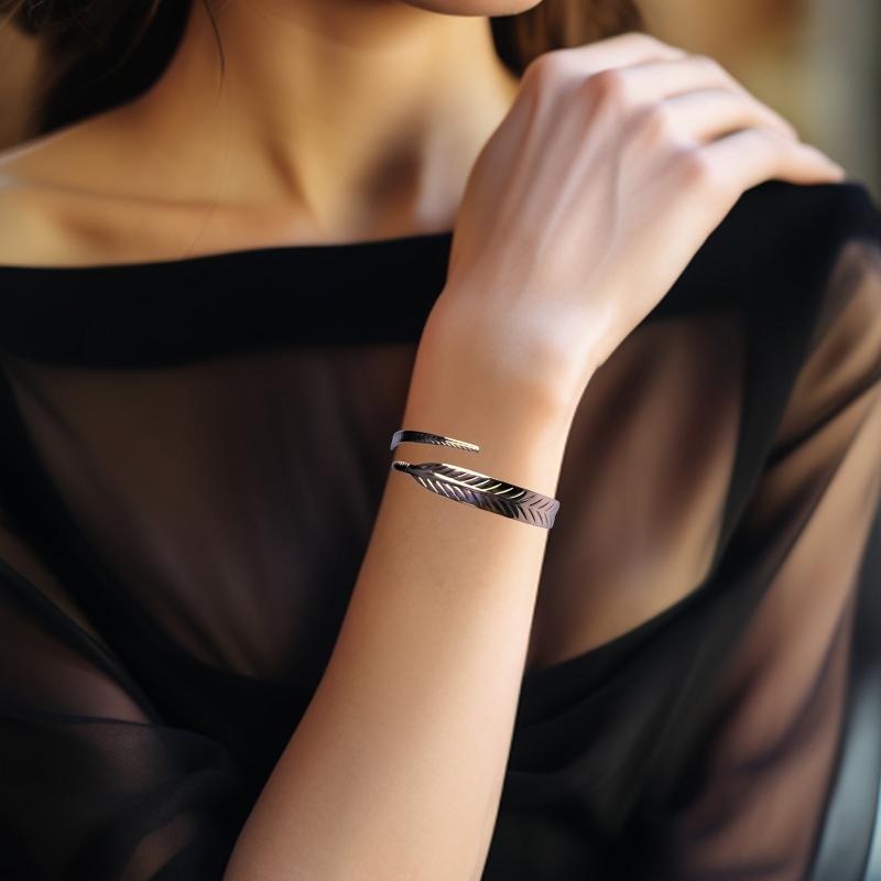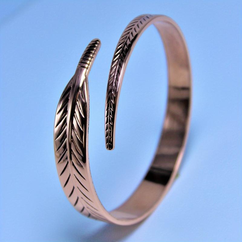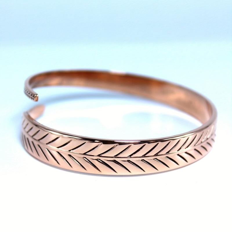 This boho copper cuff bangle with no plating features a leaf design, perfect for daily wear and gift giving. It is a versatile jewelry accessory that complements any outfit.