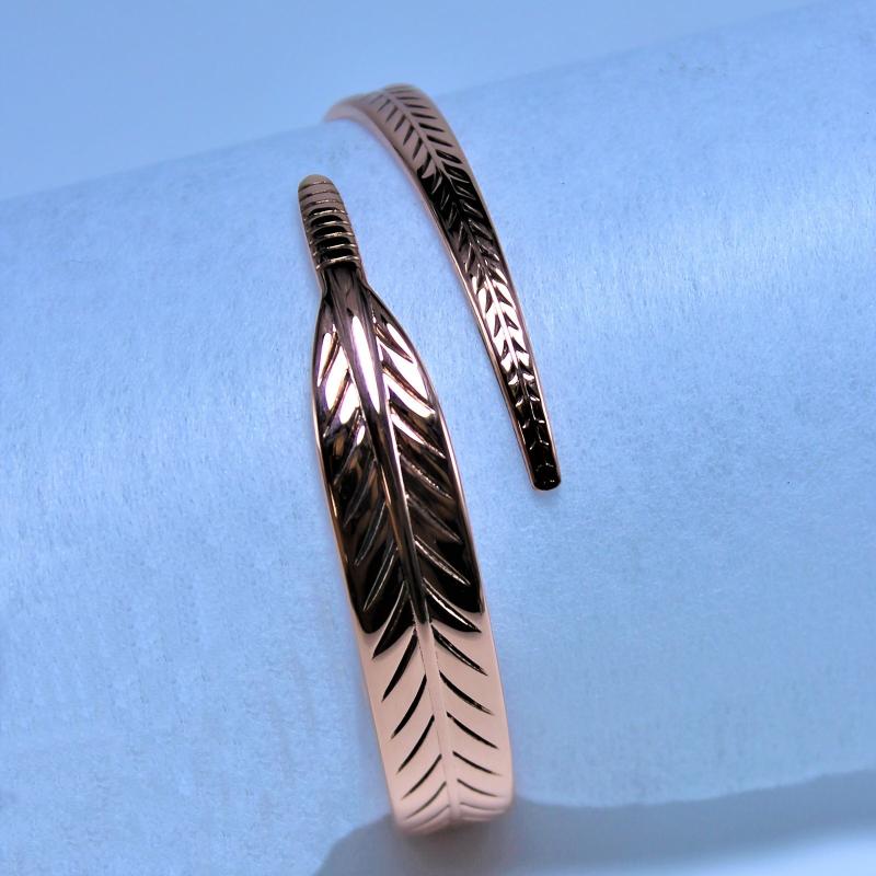 • Boho copper cuff bangle with leaf design