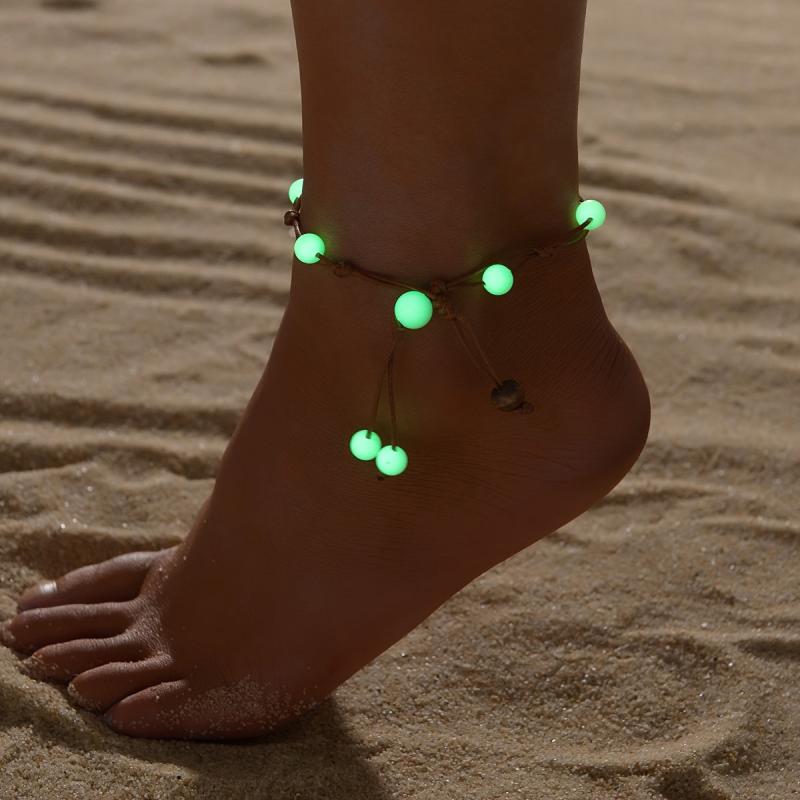Boho Glow in the Dark Bead Anklet for Women Adjustable Cord Beach Party Jewelry