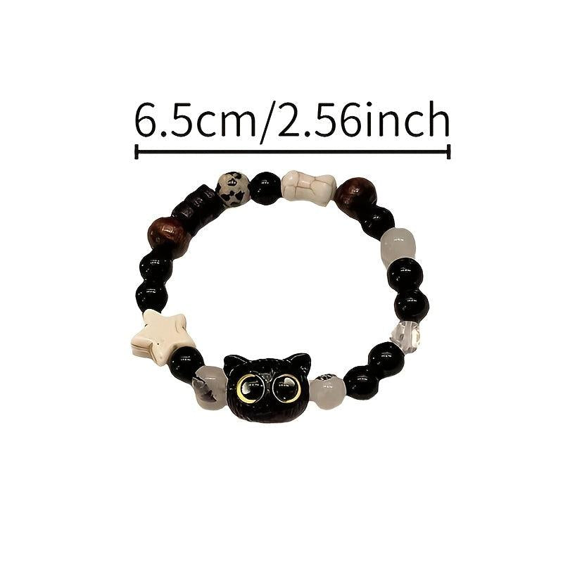 Add a touch of bohemian style to your outfit with this unique ceramic woven bracelet featuring a skull cat design with sweet tassels and colorful beads.
