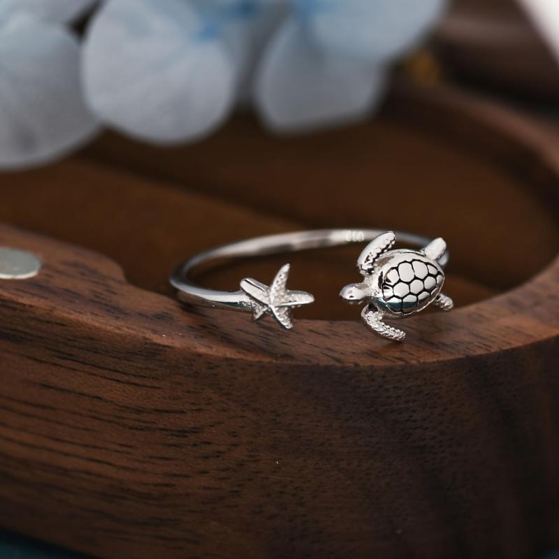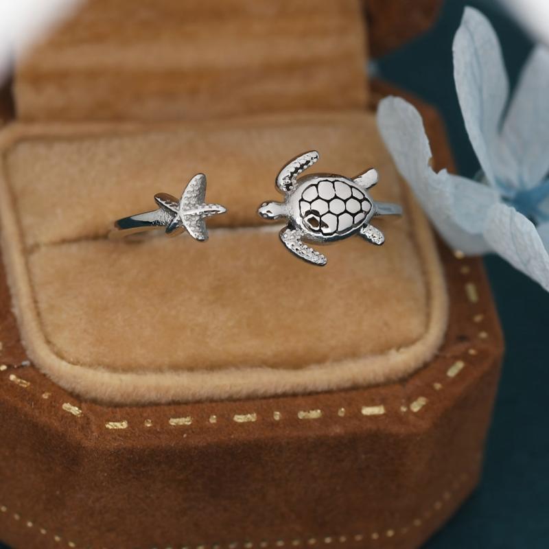 Boho Turtle Ring Golden Plated Open Band Synthetic Stones Unisex Jewelry