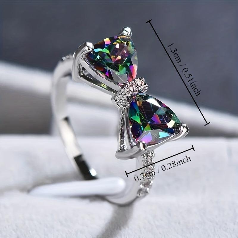 Bow Knot Promise Ring for Women Four Prong Synthetic Gemstone Jewelry
