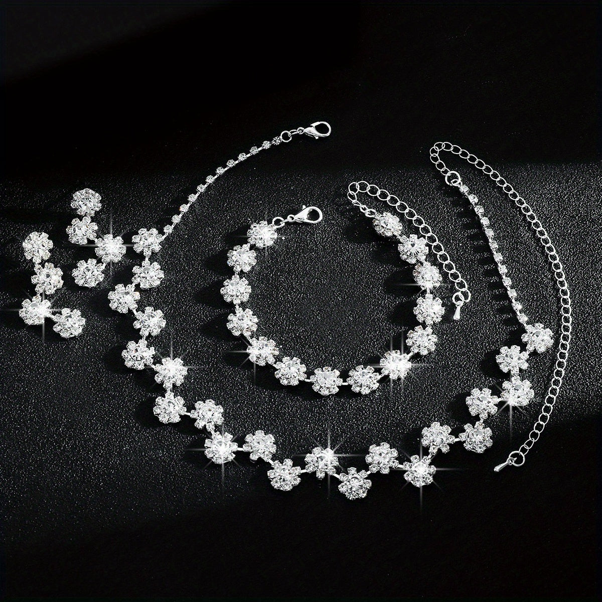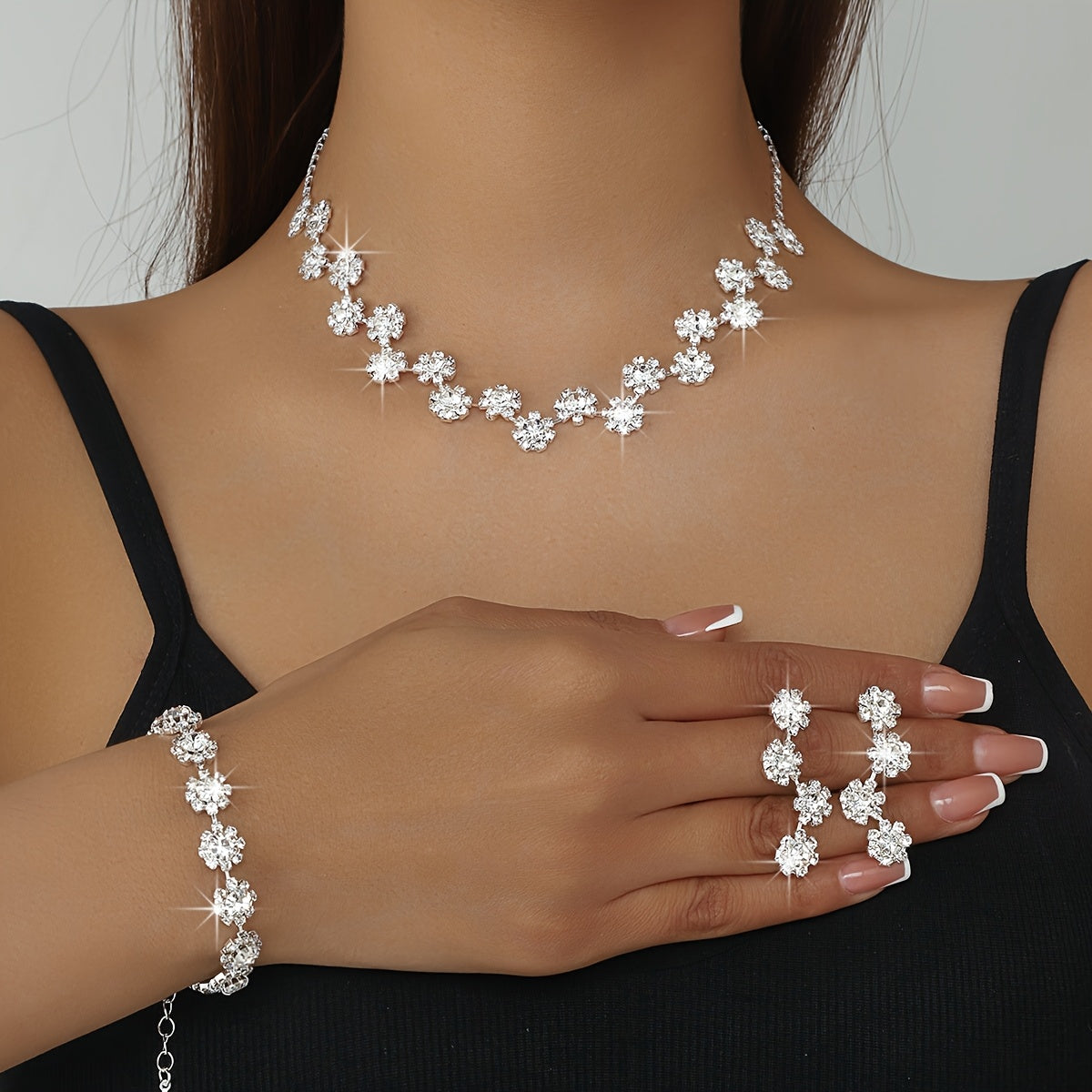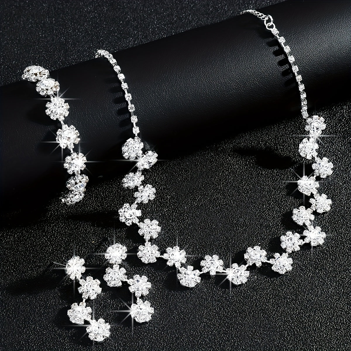 Elegant high-end jewelry set featuring sparkling rhinestone flowers, perfect for brides to wear on their wedding day or special occasions.