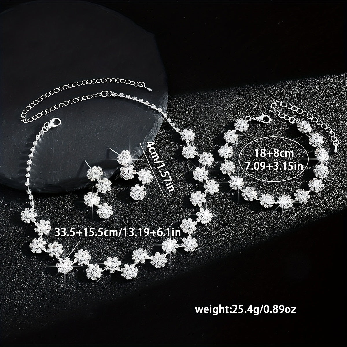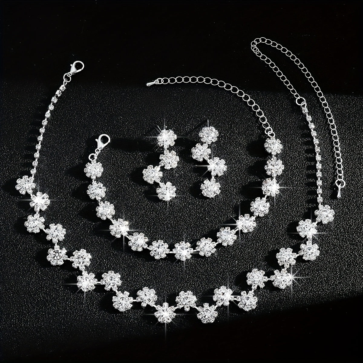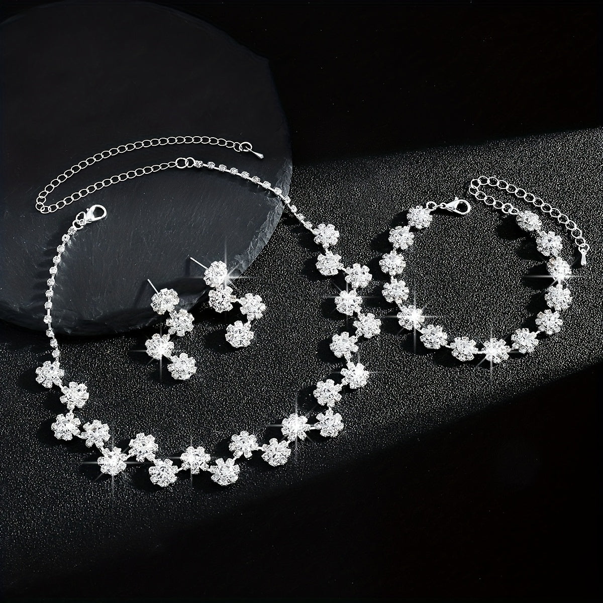 Elegant high-end jewelry set featuring sparkling rhinestone flowers, perfect for brides to wear on their wedding day or special occasions.