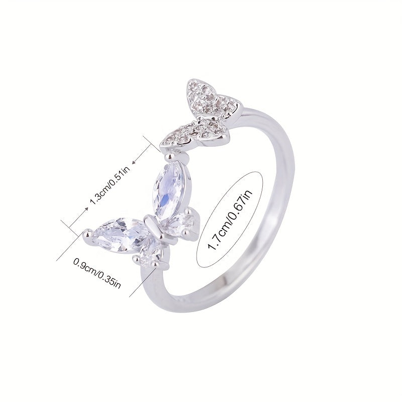 Butterfly CZ Ring Adjustable Open for Casual & Special Occasions