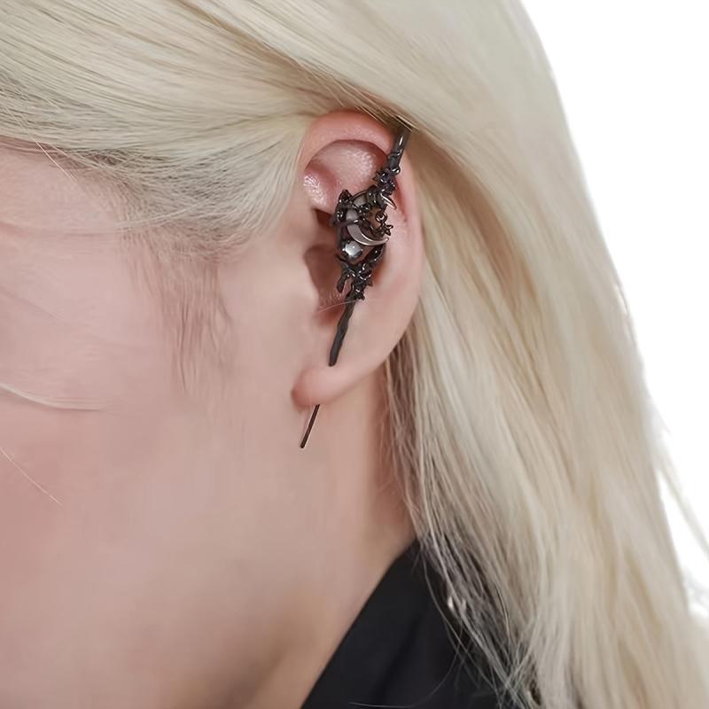 Elevate your look with these versatile Celestial Moon Ear Studs. Featuring intricate metal detailing, they are perfect for daily wear or special occasions year-round.