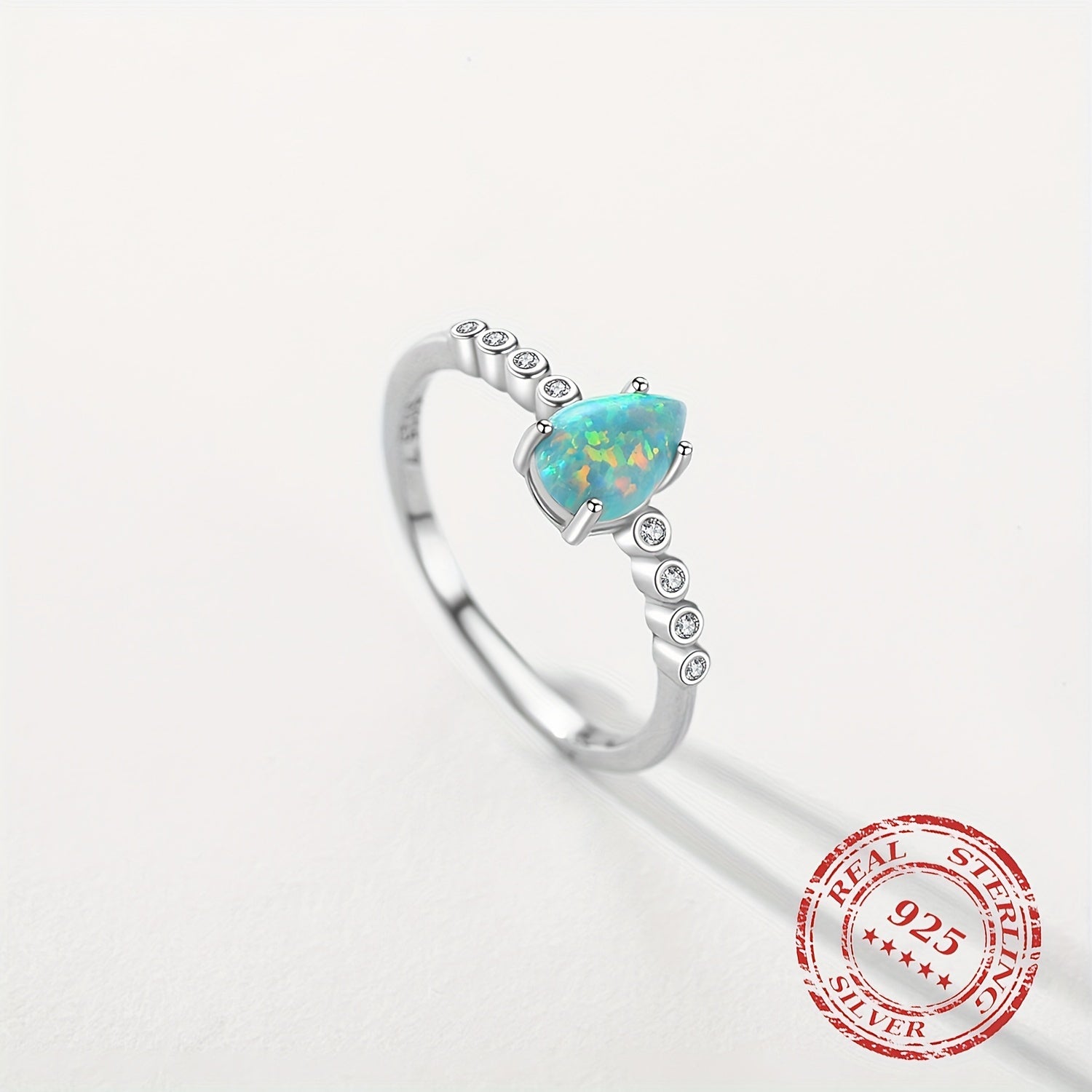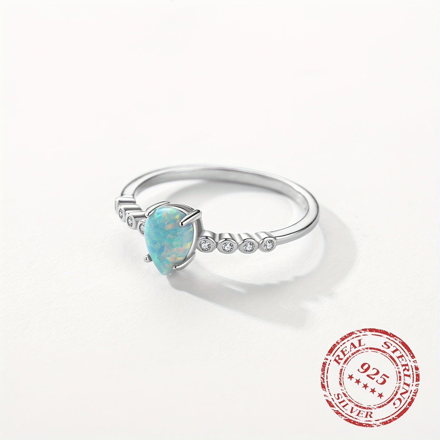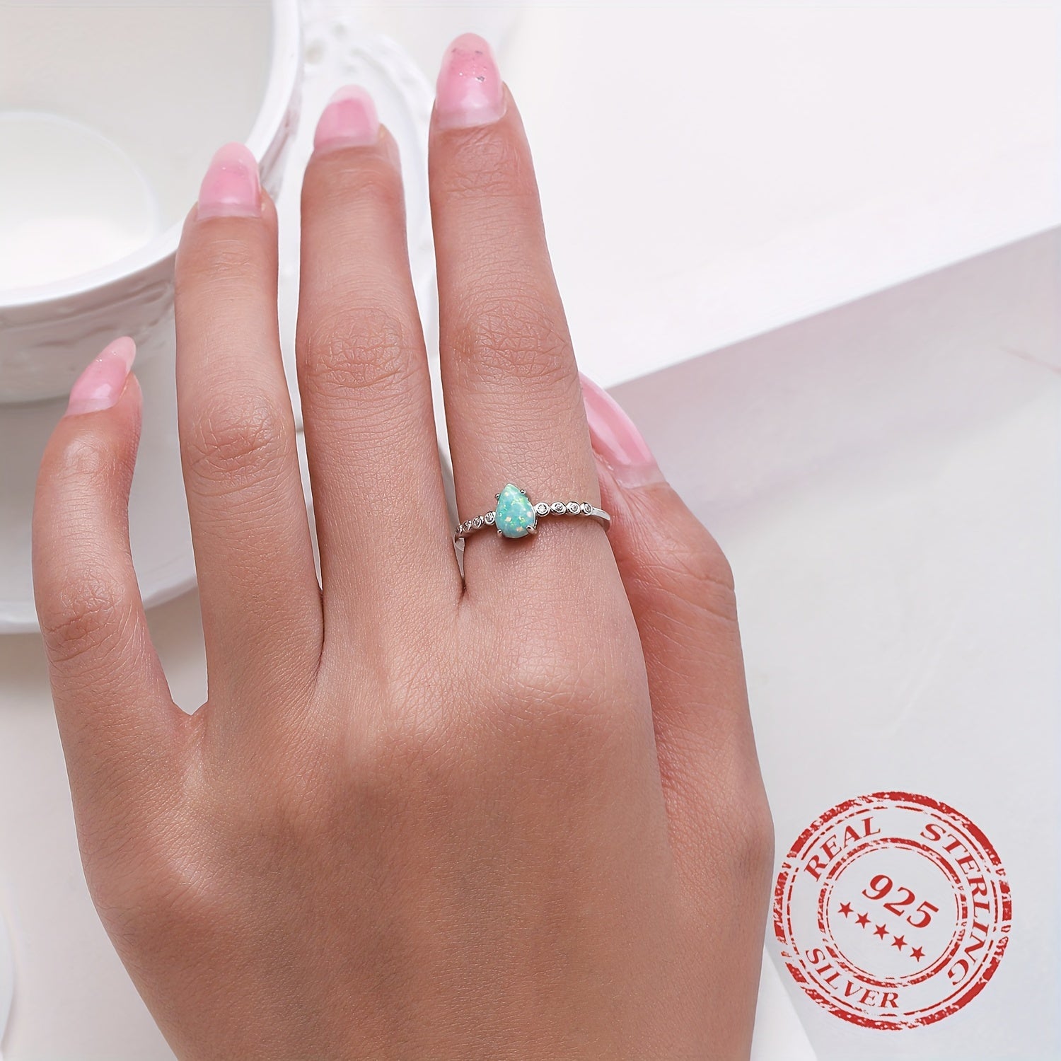 This exquisite 925 sterling silver ring features a beautiful opal stone. It is a delicate accessory perfect for daily wear or special occasions. A great gift idea for ladies.