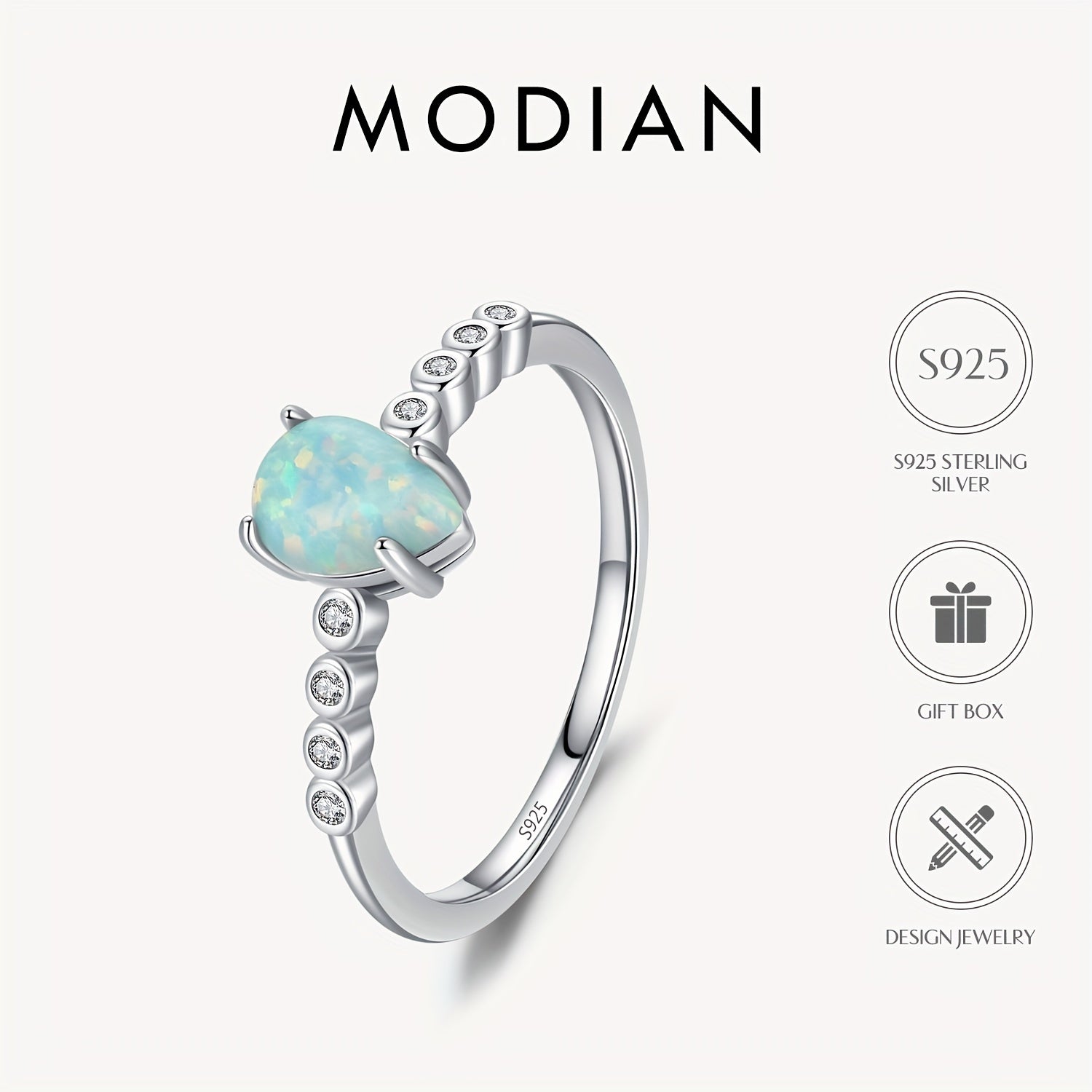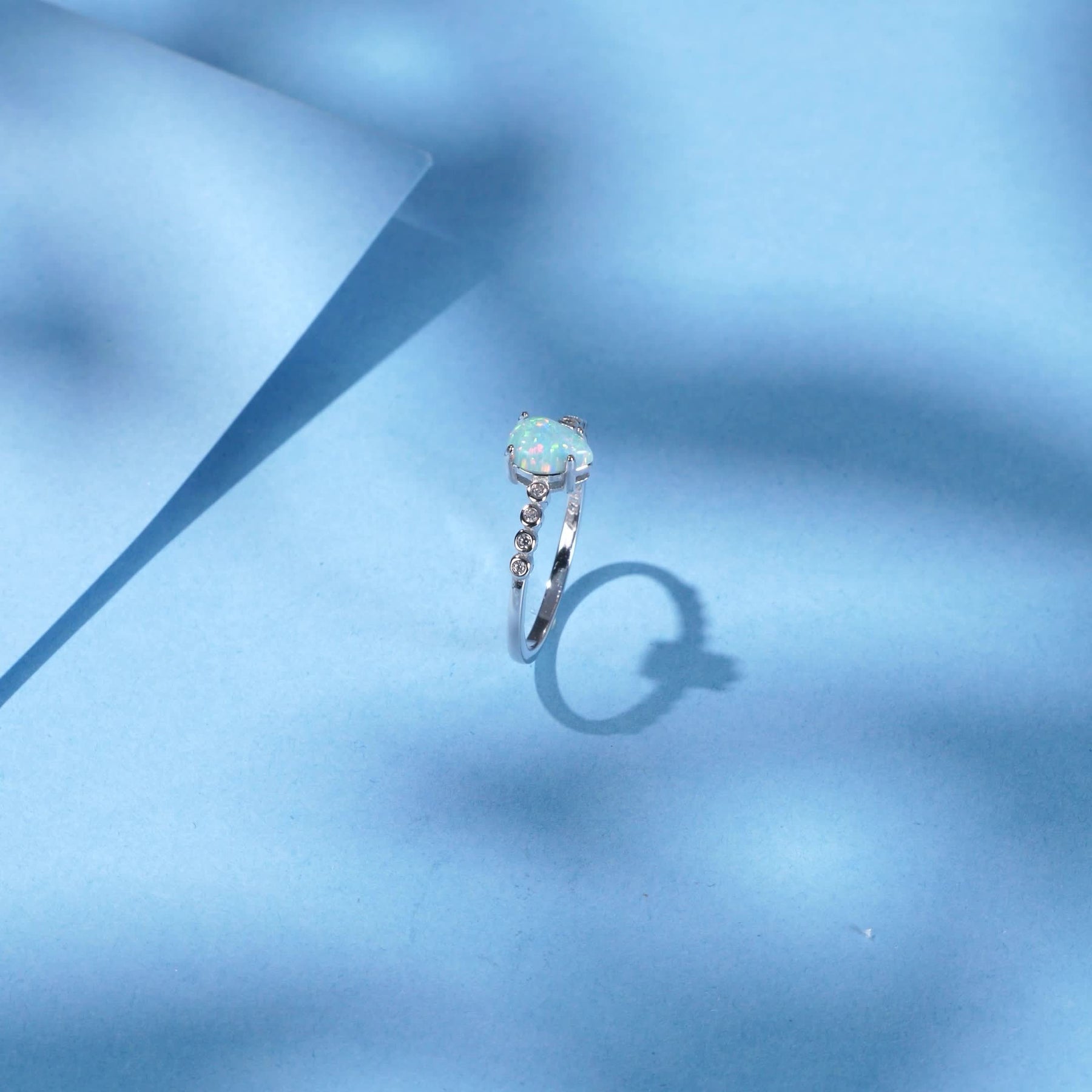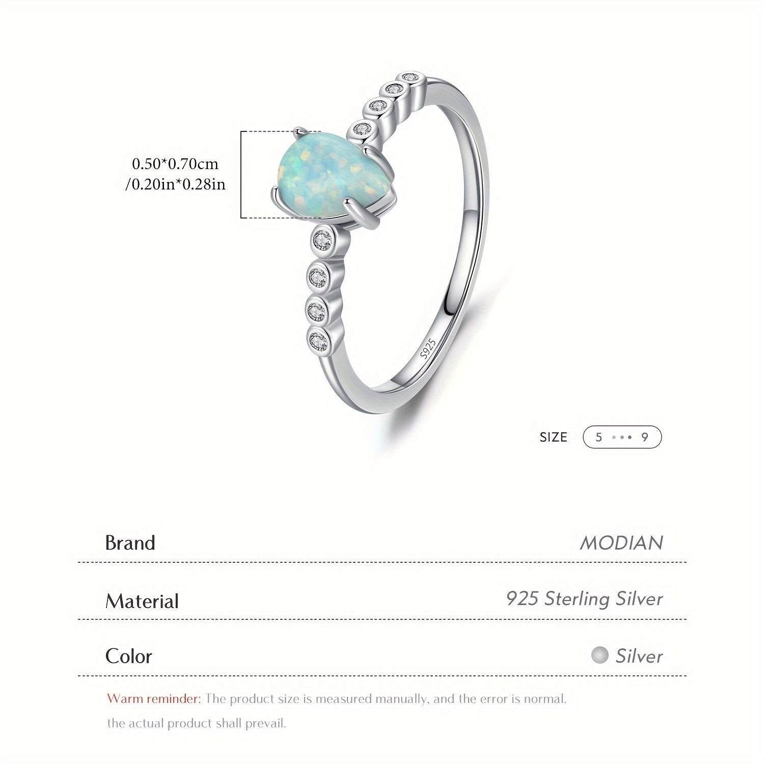This exquisite 925 sterling silver ring features a beautiful opal stone. It is a delicate accessory perfect for daily wear or special occasions. A great gift idea for ladies.