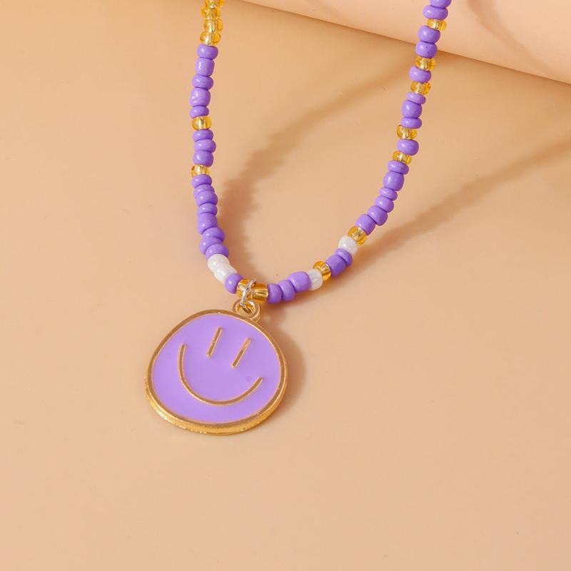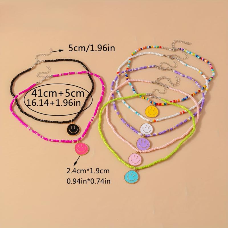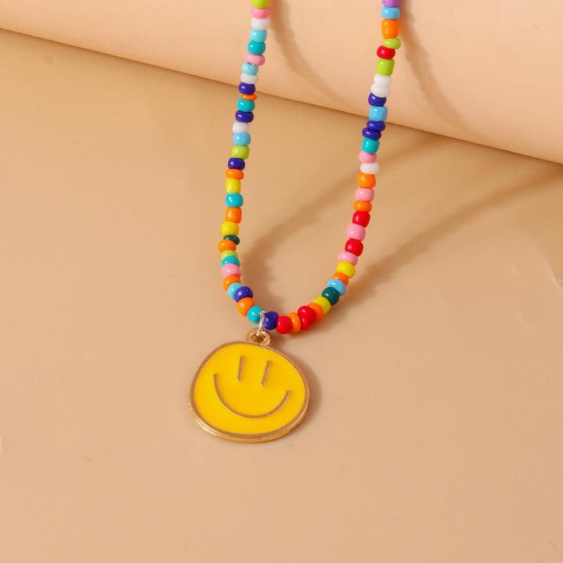 Add a pop of joy to your outfit with this stylish and versatile collarbone chain featuring colorful dopamine face beads.