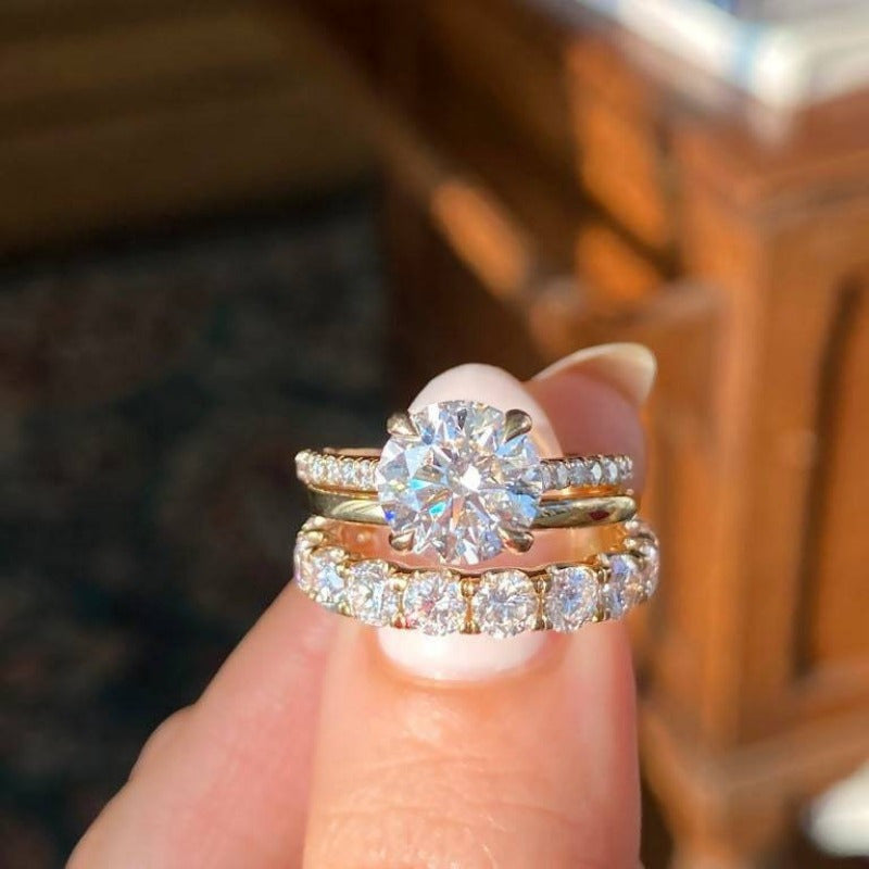 Elegant bridal ring set crafted from copper and adorned with artificial crystal inlay, perfect for weddings and versatile for daily or banquet wear in all seasons.