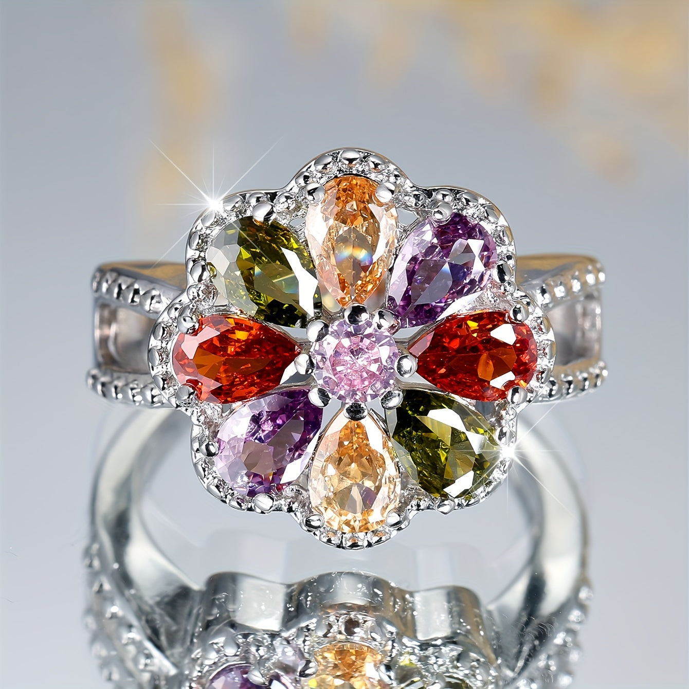 This stunning copper floral ring features sparkling cubic zirconia stones, making it the perfect accessory for weddings, parties, and anniversaries.