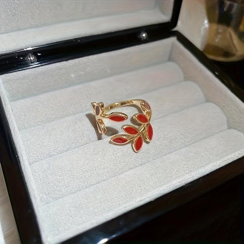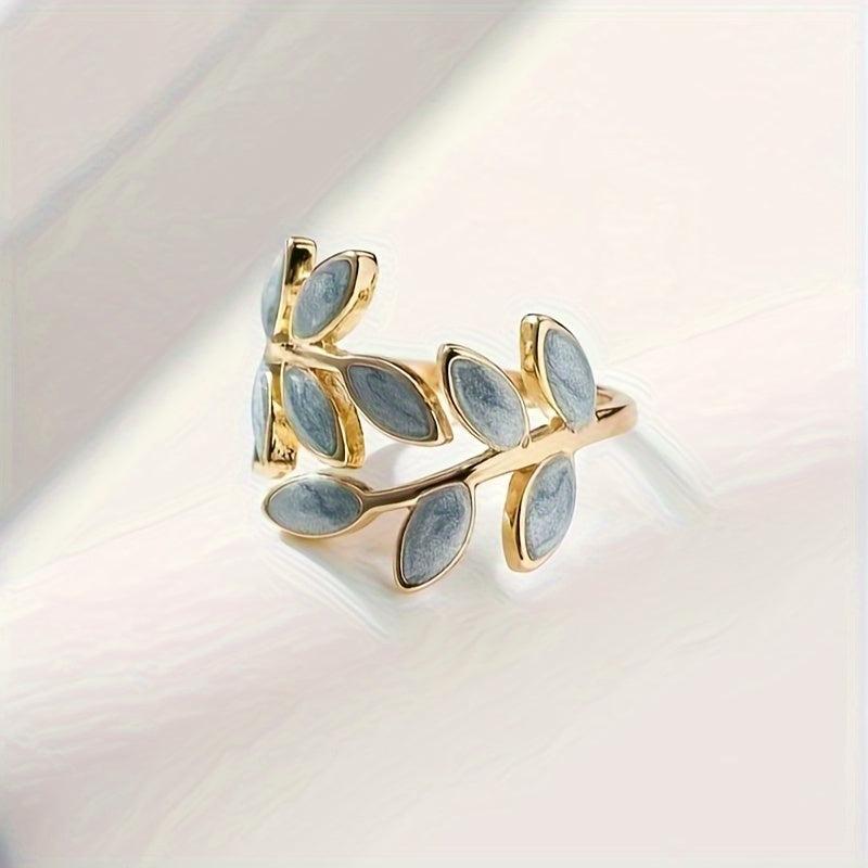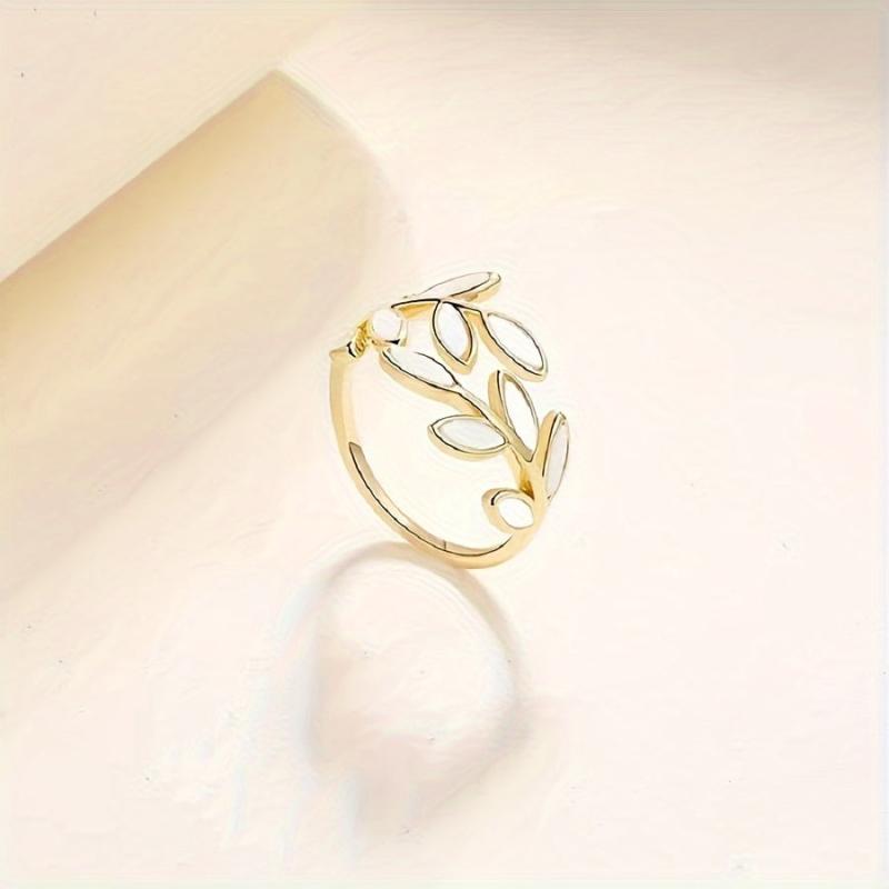Elegant copper open ring designed as a tree leaf, plated for everyday wear.