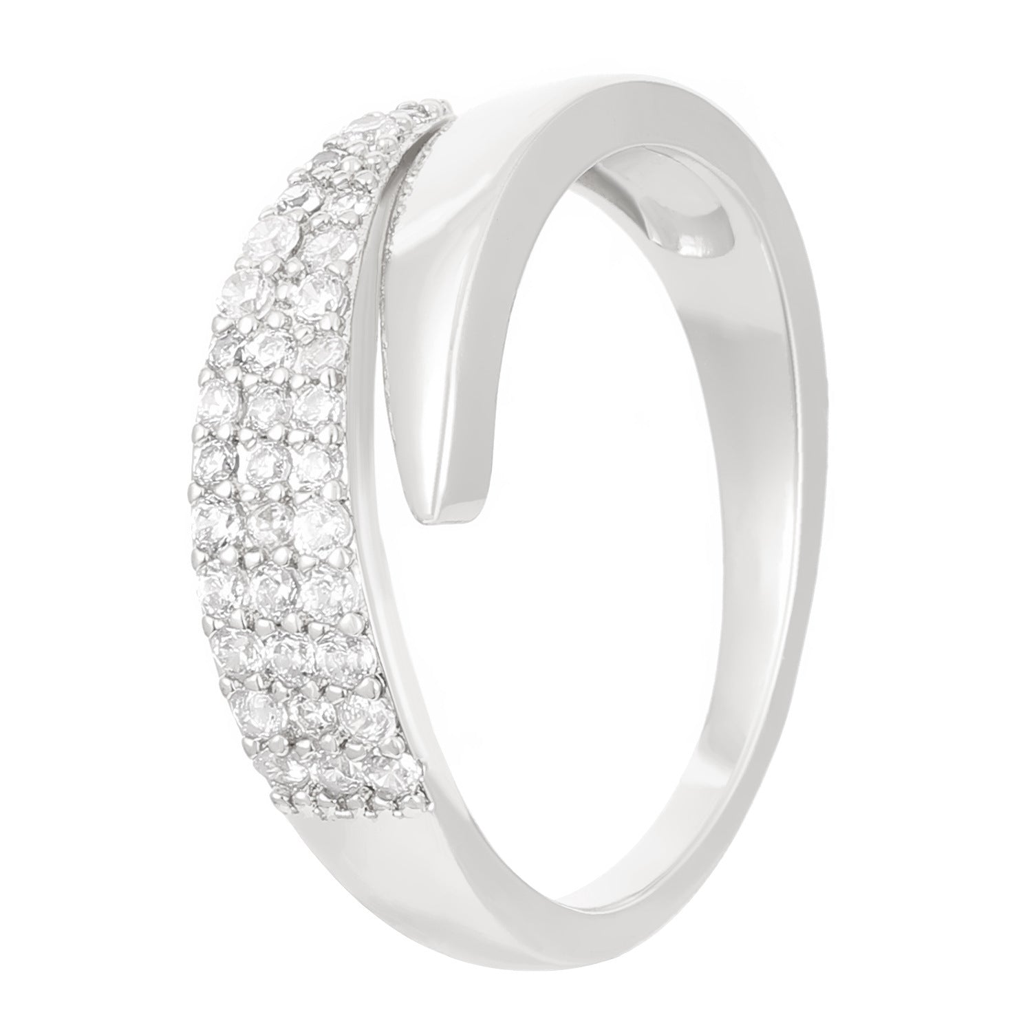 This stunning open ring features a sparkling synthetic zirconia, perfect for daily wear or special occasions. It is adjustable and suitable for all seasons.