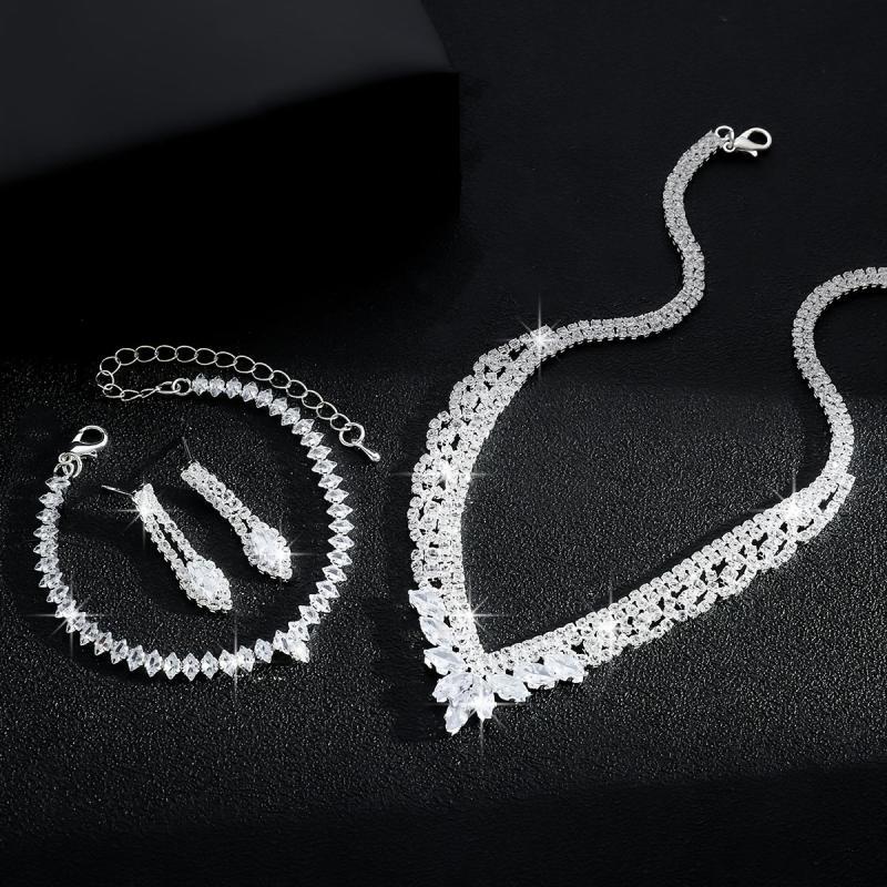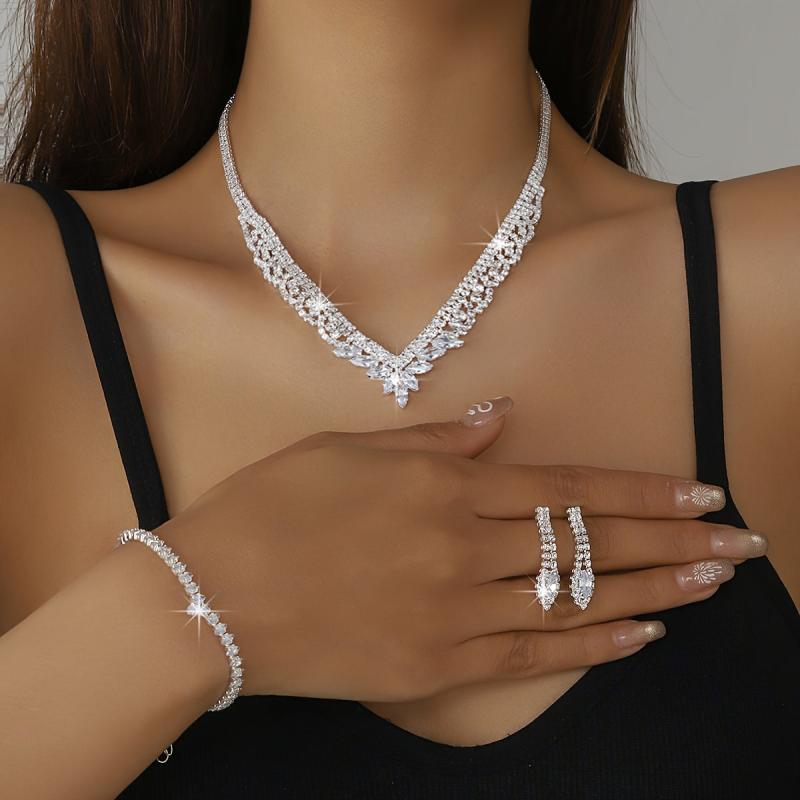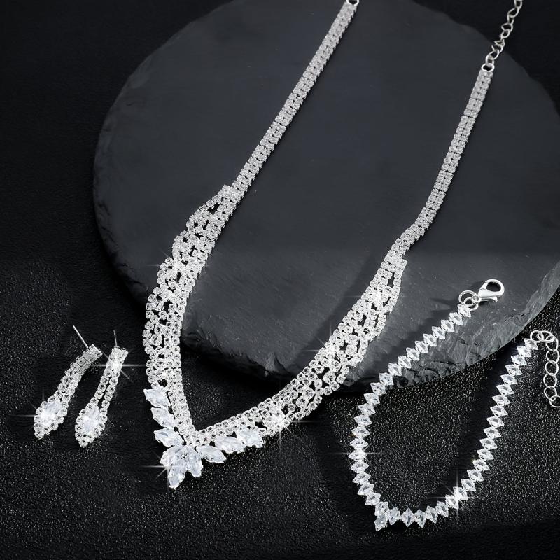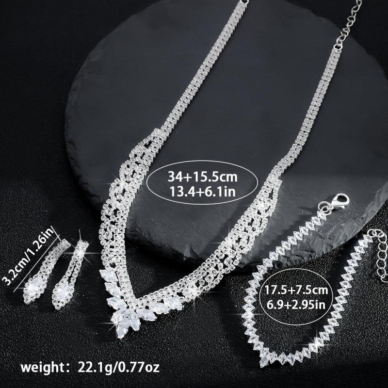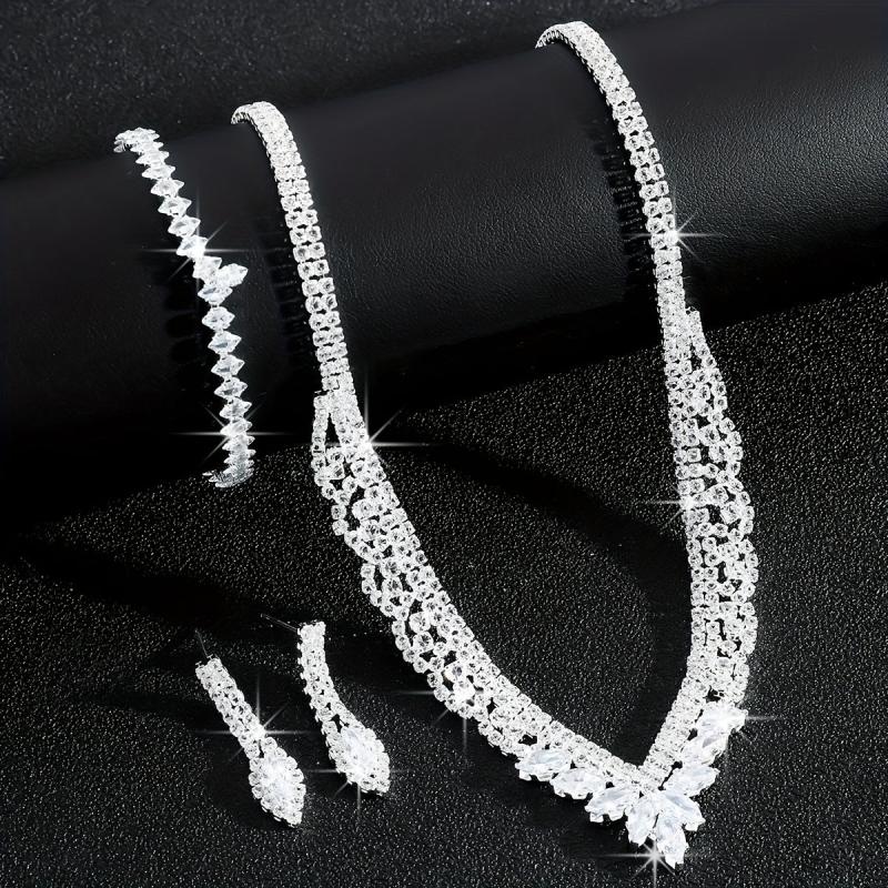 Complete your formal look with this elegant V necklace, bracelet, and earrings set featuring cubic zirconia accents. Ideal for weddings and formal events.