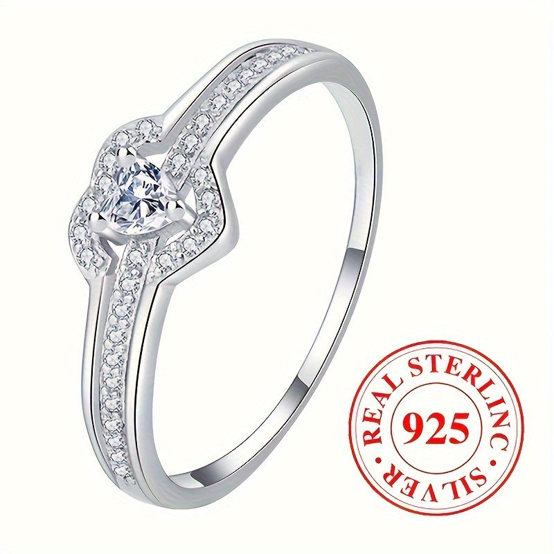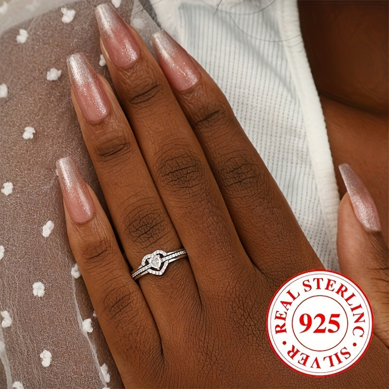 Elegant double layer heart-shaped engagement ring made of 2.5 grams of 925 sterling silver adorned with sparkling zirconia. Perfect as a high-end jewelry gift.