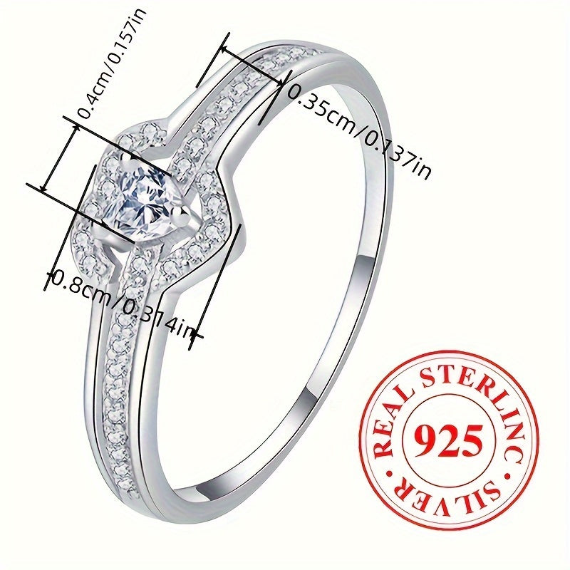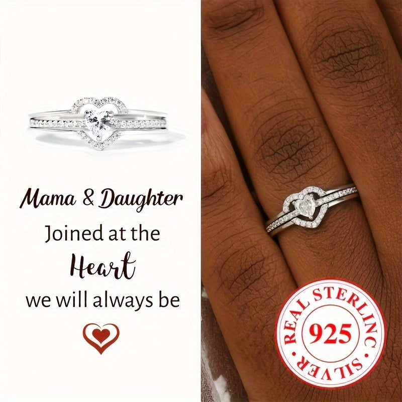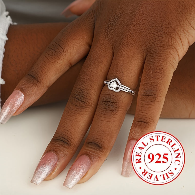 Double Layer Heart Engagement Ring 925 Silver Zirconia Gift
