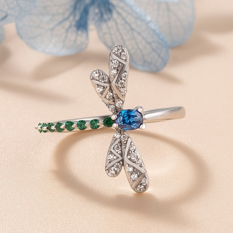 Dragonfly Zirconia Ring for Women - Stylish 4 Prong Design