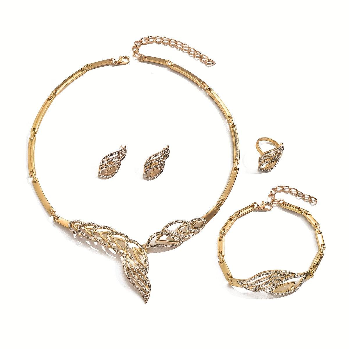 This exquisite set includes a rhinestone necklace, matching earrings, and a stunning bracelet, ideal for adding a touch of sophistication to your party or formal attire.