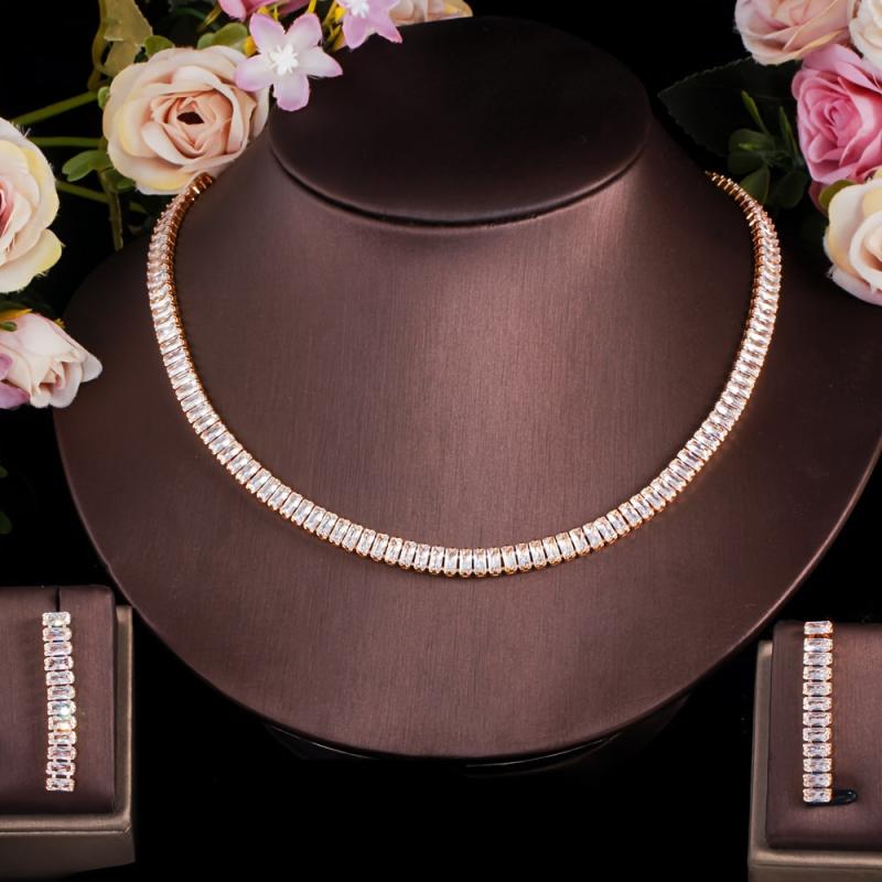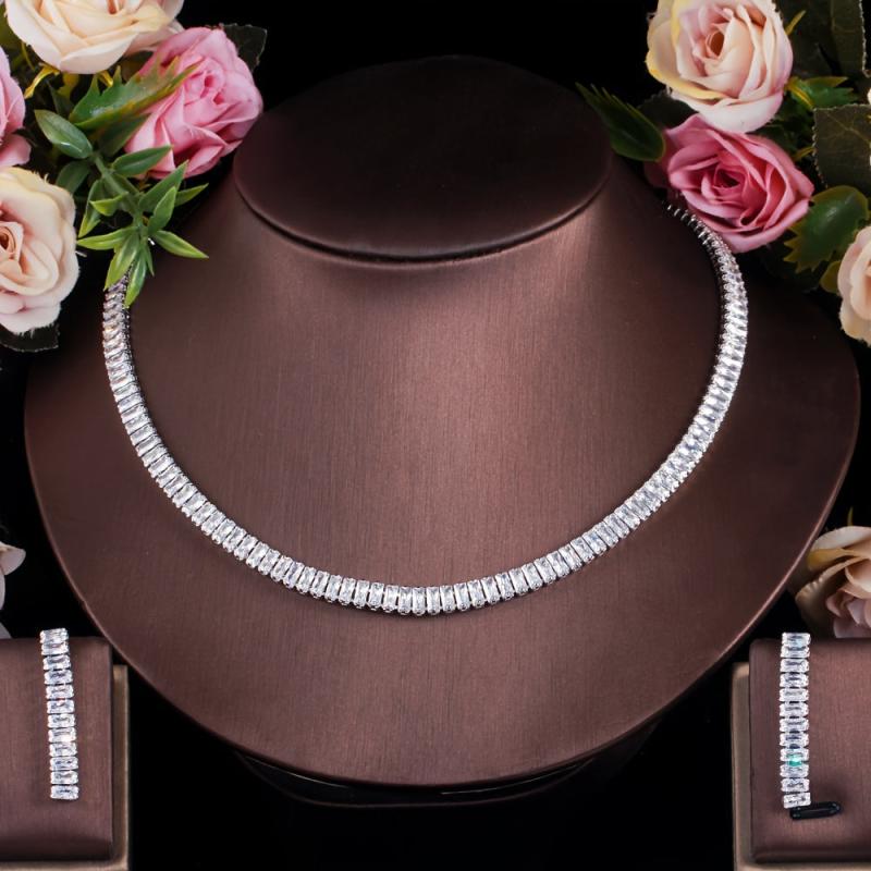 Elegant Synthetic Zirconia Necklace & Earrings Set