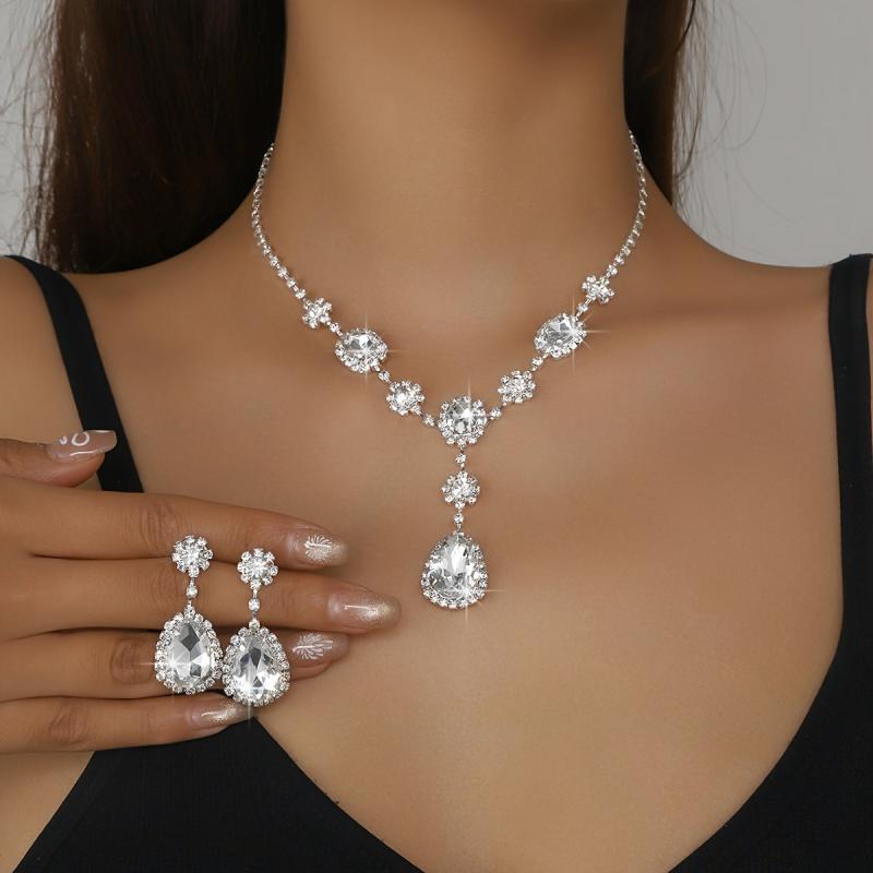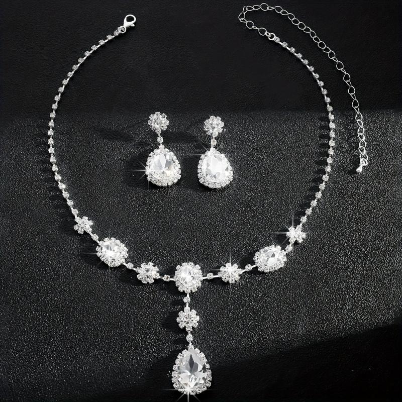 This stunning set is perfect for weddings or special occasions. The golden zirconia teardrop design adds a touch of elegance and sophistication.