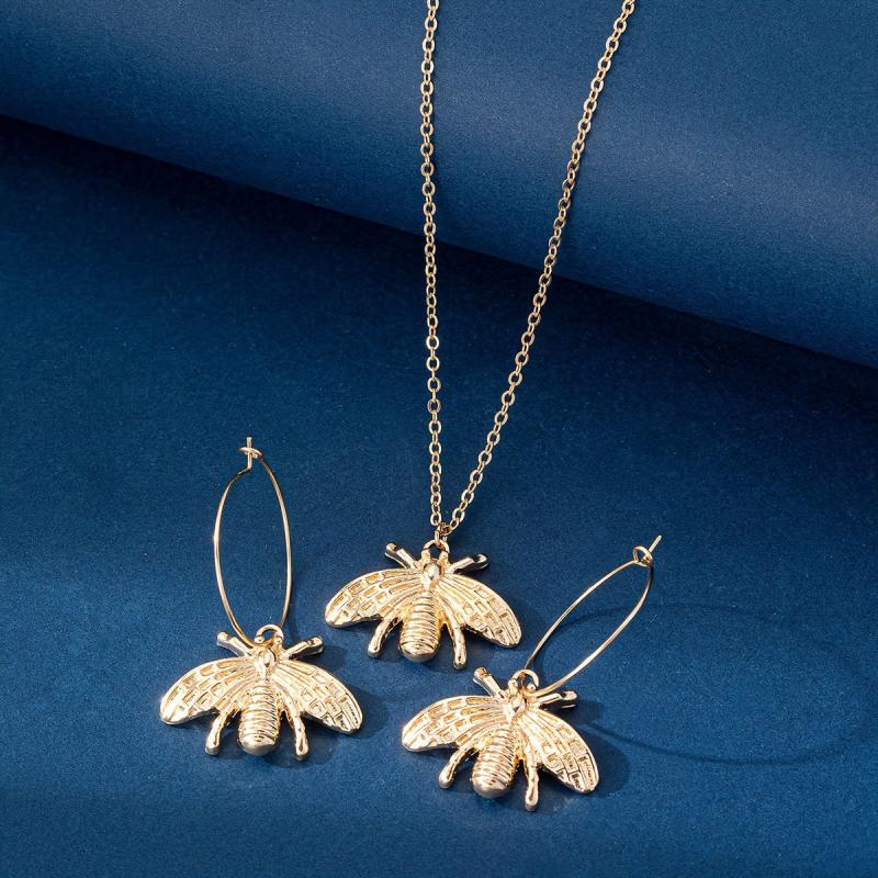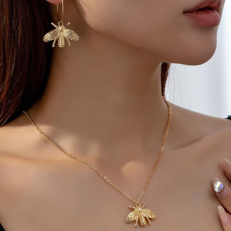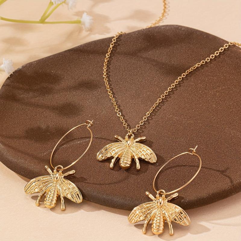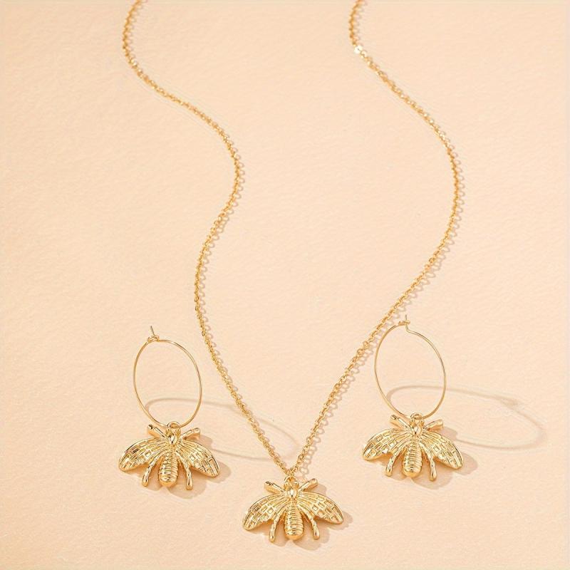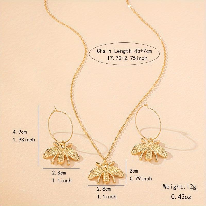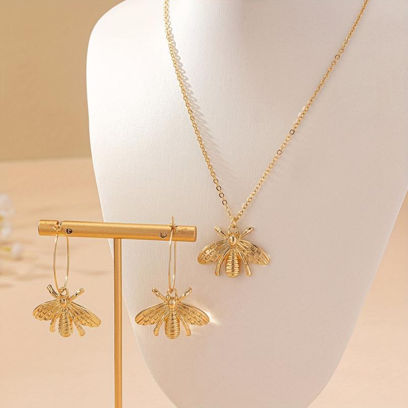 This set includes a stylish bee necklace and a pair of bee earrings that are perfect for everyday wear or special gatherings. The design blends European and American styles, making it a unique and trendy accessory.