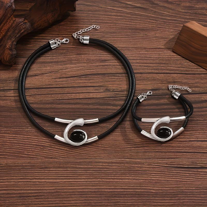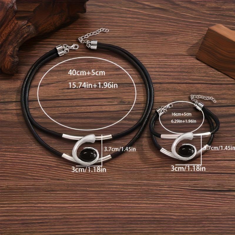 Elevate your style with this trendy PU braided rope set featuring metal tube and resin geometric spiral elements. Perfect for adding a touch of creativity to your ensemble.