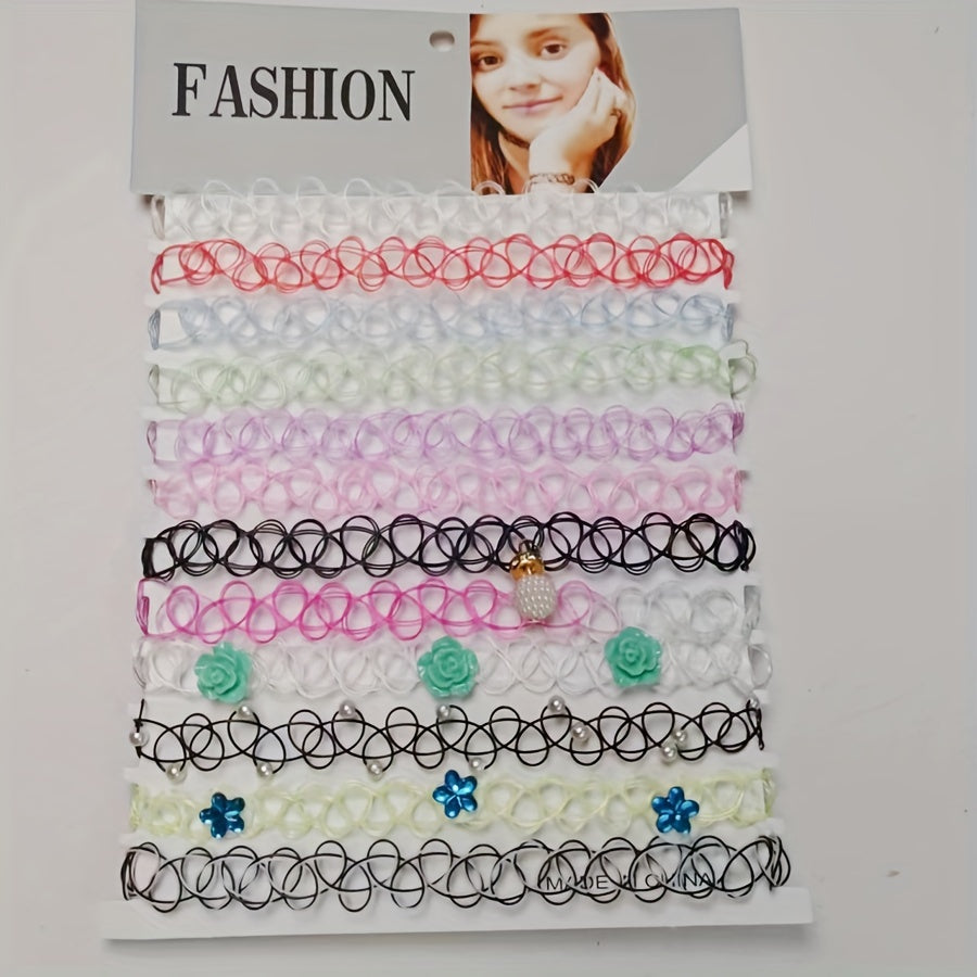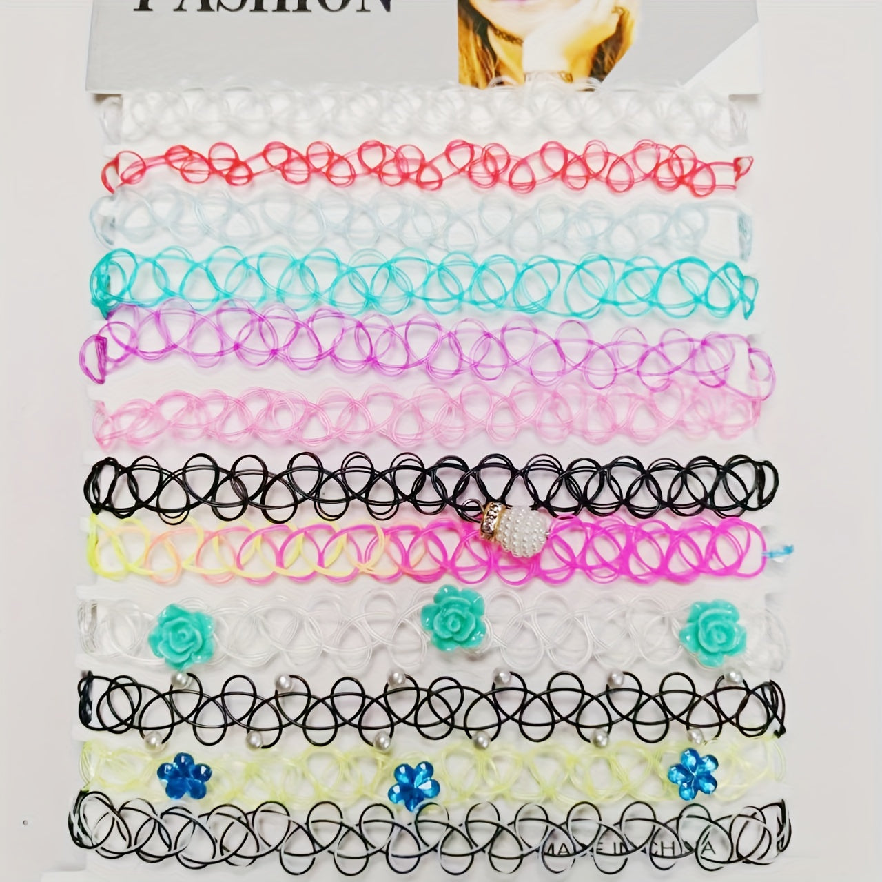 These retro collarbone necklaces feature braided fish line design in a set of 12 colorful pieces. Versatile and trendy accessory to elevate any outfit.